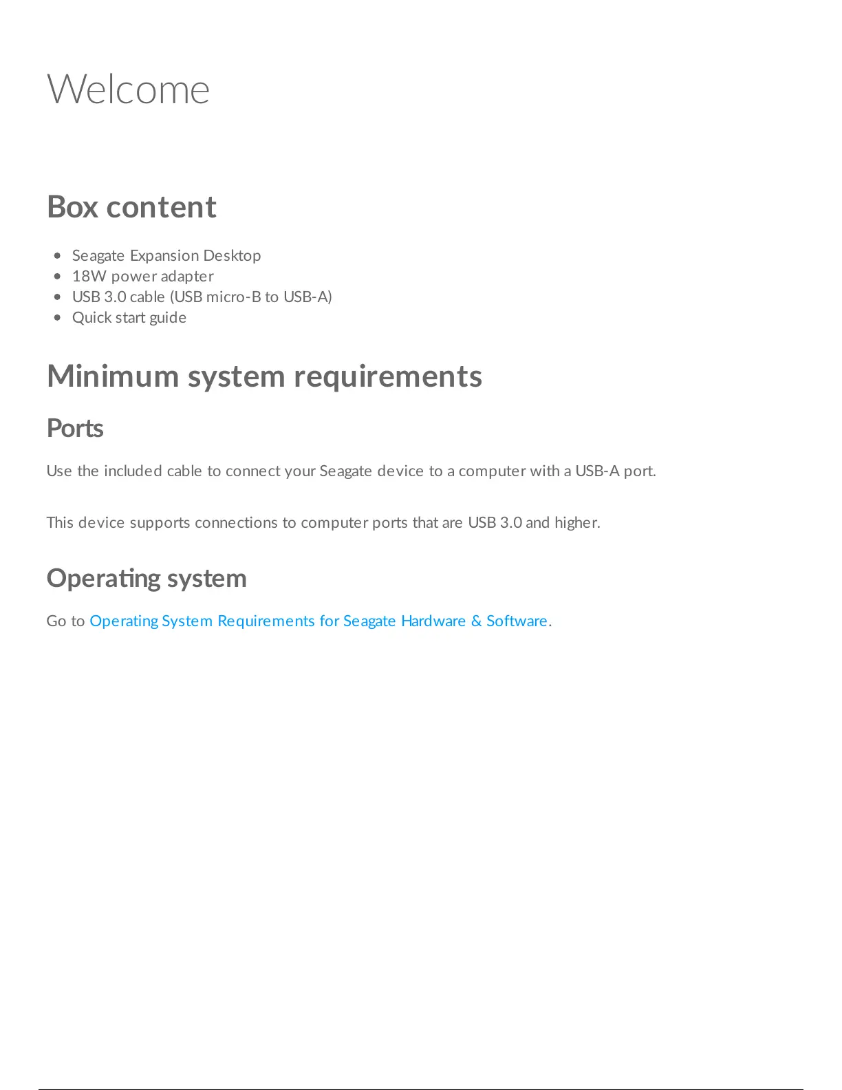 Go to Operating System Requirements for Seagate Hardware & Software.