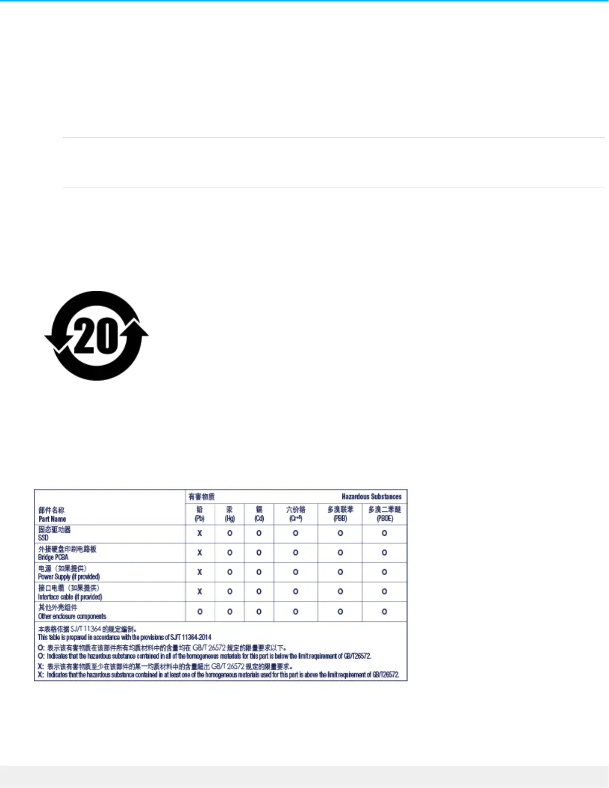 法”。为了符合中国 RoHS 2 的要求,我们根据“电子电气产品有害物质限制使用标识”(SJT 11364-2014) 确定本产品