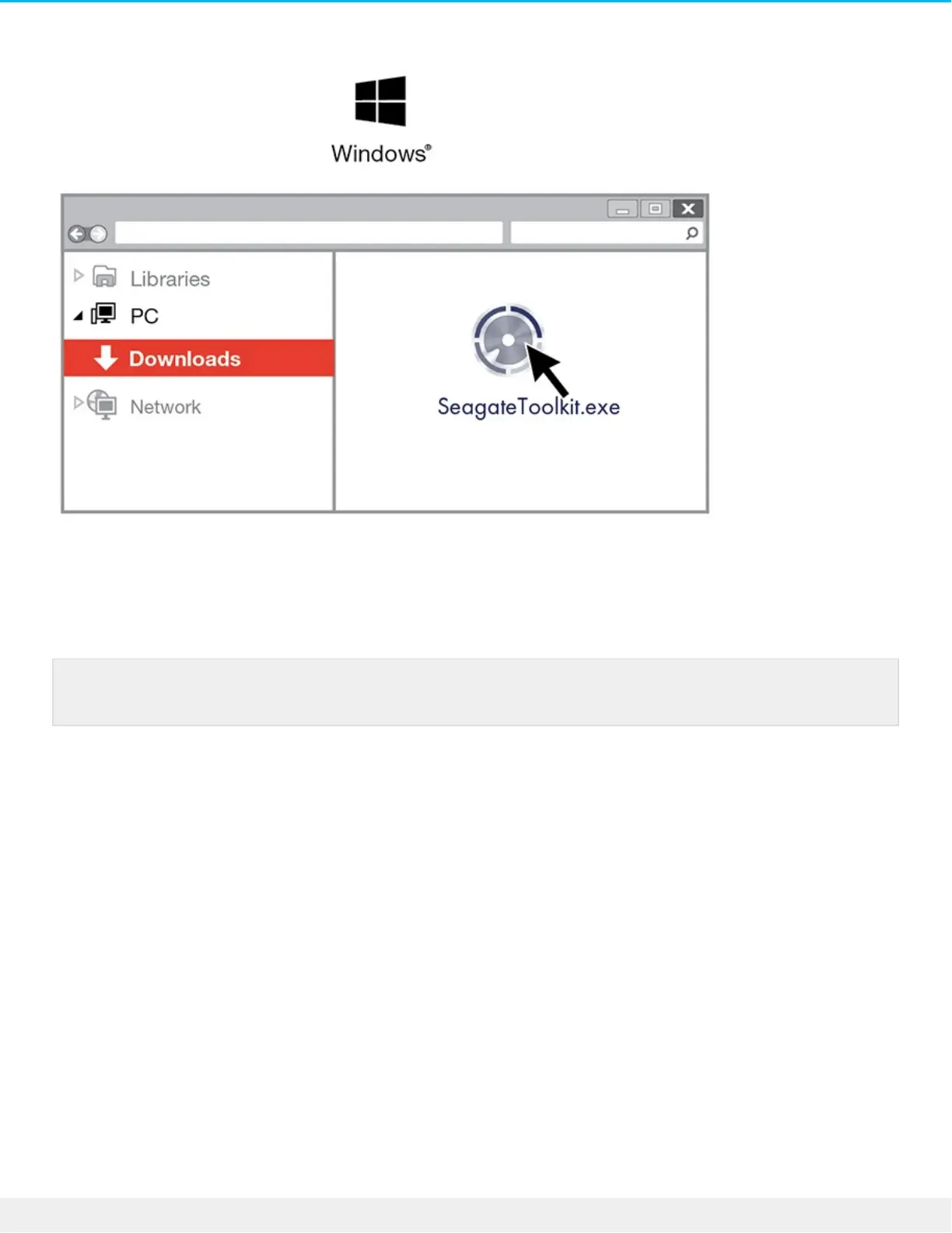 Using File Explorer, go to the folder where you receive downloads. Click on the SeagateToolkit.exe file to
