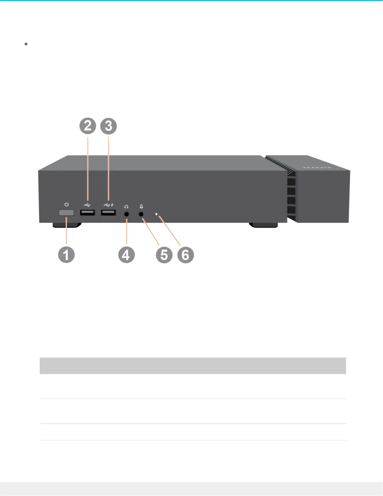 3. Charging USB 3.1 (Gen 2) port—USB Type A connector providing 7.5W/5V/1.5A charge for peripheral