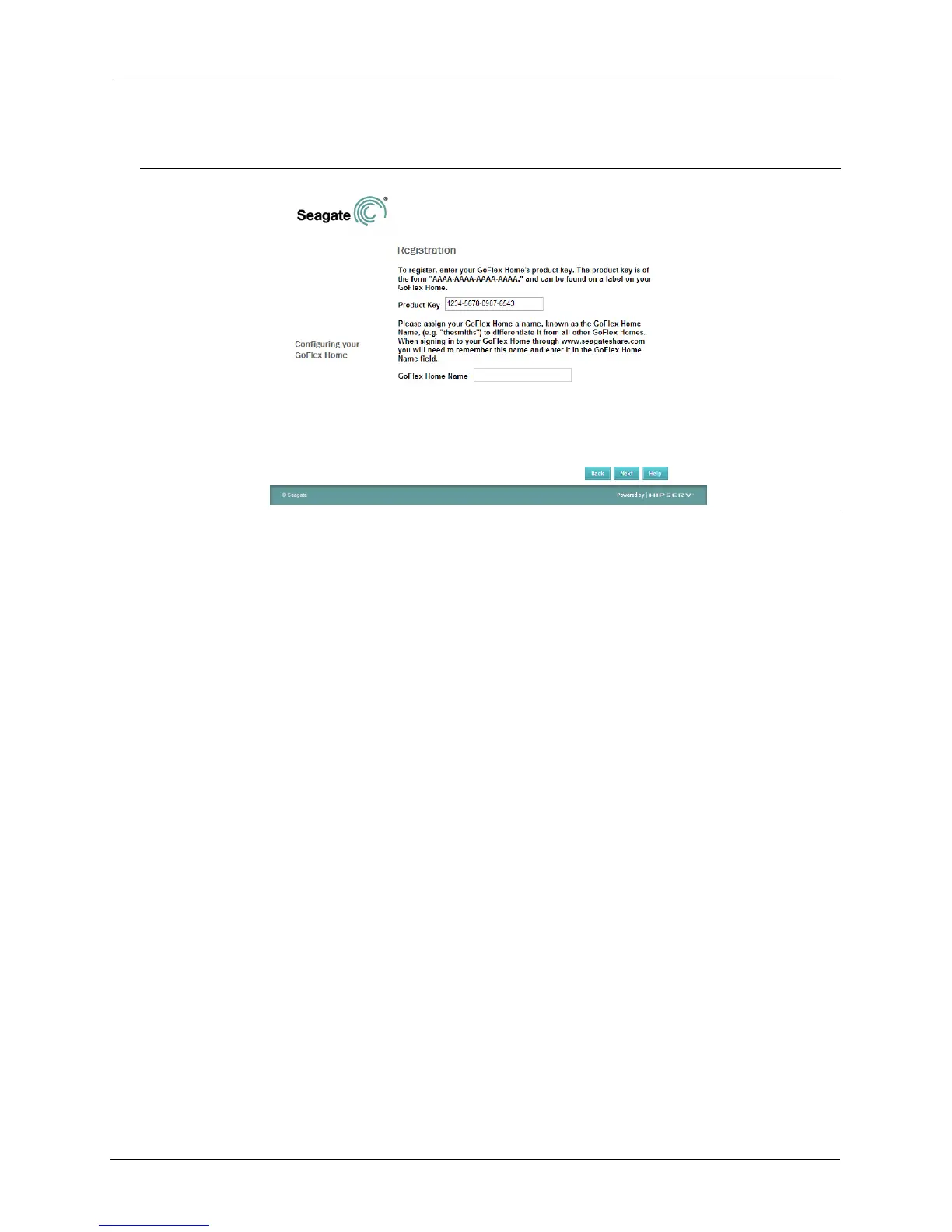 If the Product Key hasn’t been entered automatically, find it on the bottom of the GoFlex Home