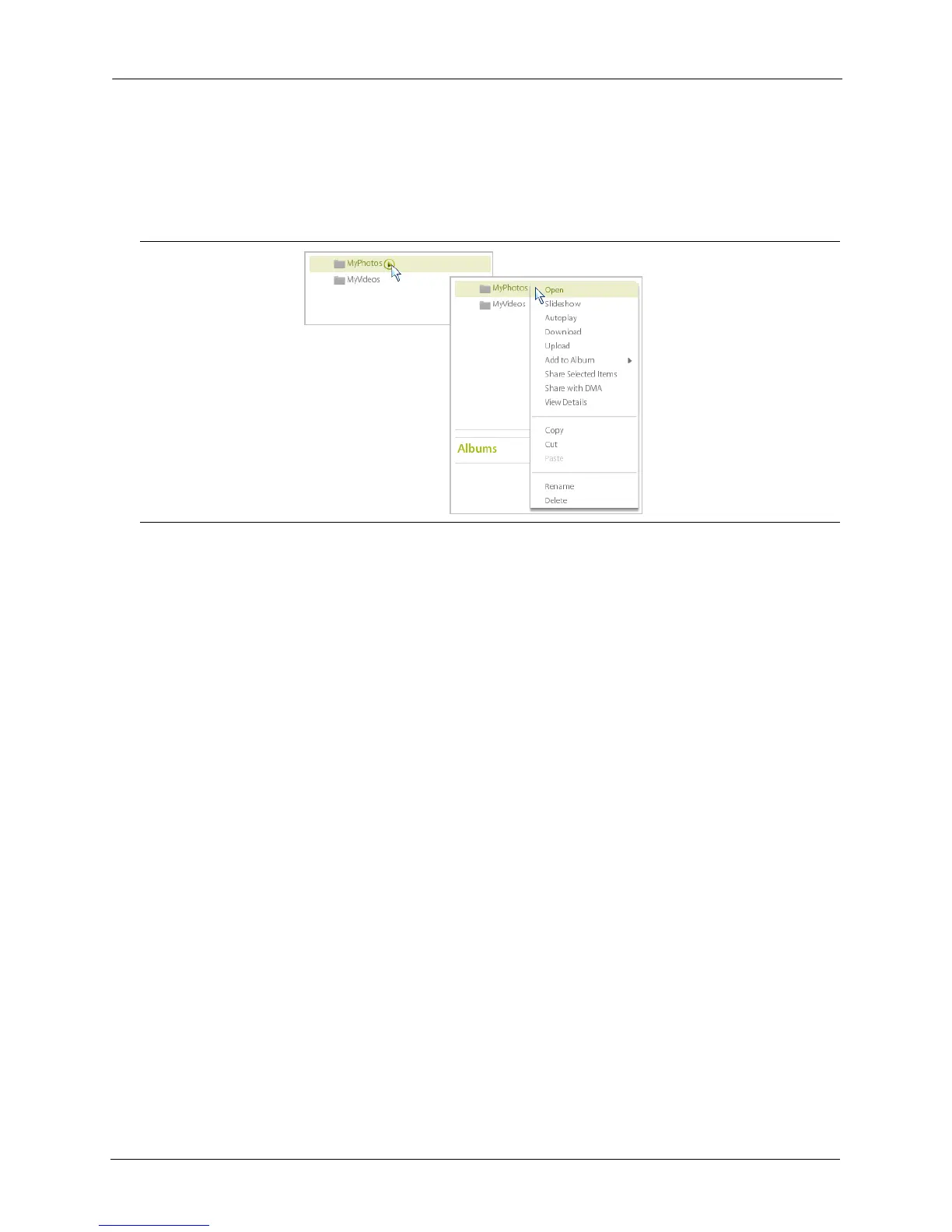 adding a folder to a share, starting a movie, or downloading a file) from the menus that appear