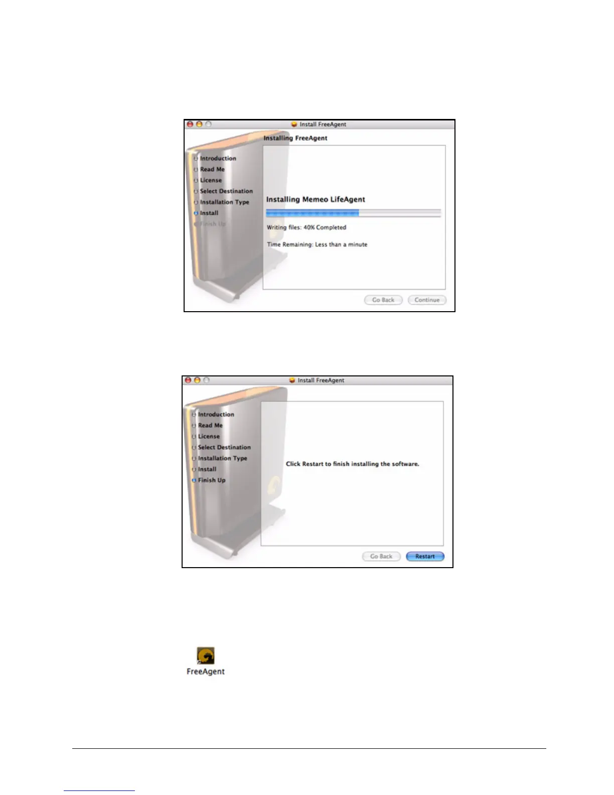 When your computer has restarted, a FreeAgent icon appears on your desktop: