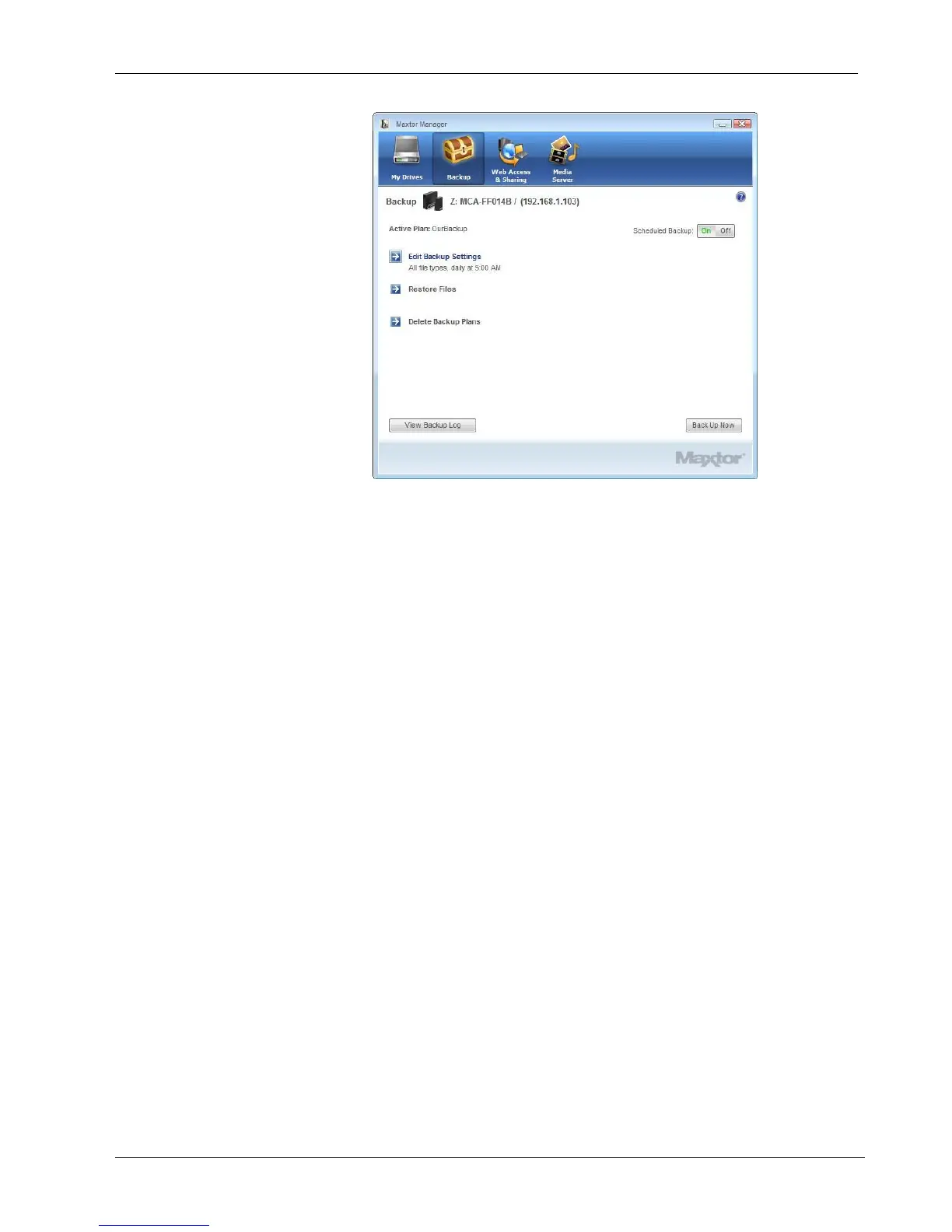 • The Back Up Now button executes the backup plan
