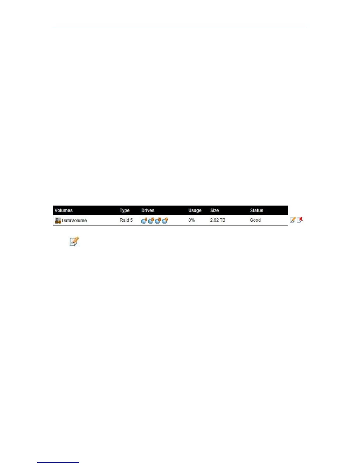 one volume protected by RAID 5. The unit supports RAID levels 0, 1, 5, 10; and JBOD