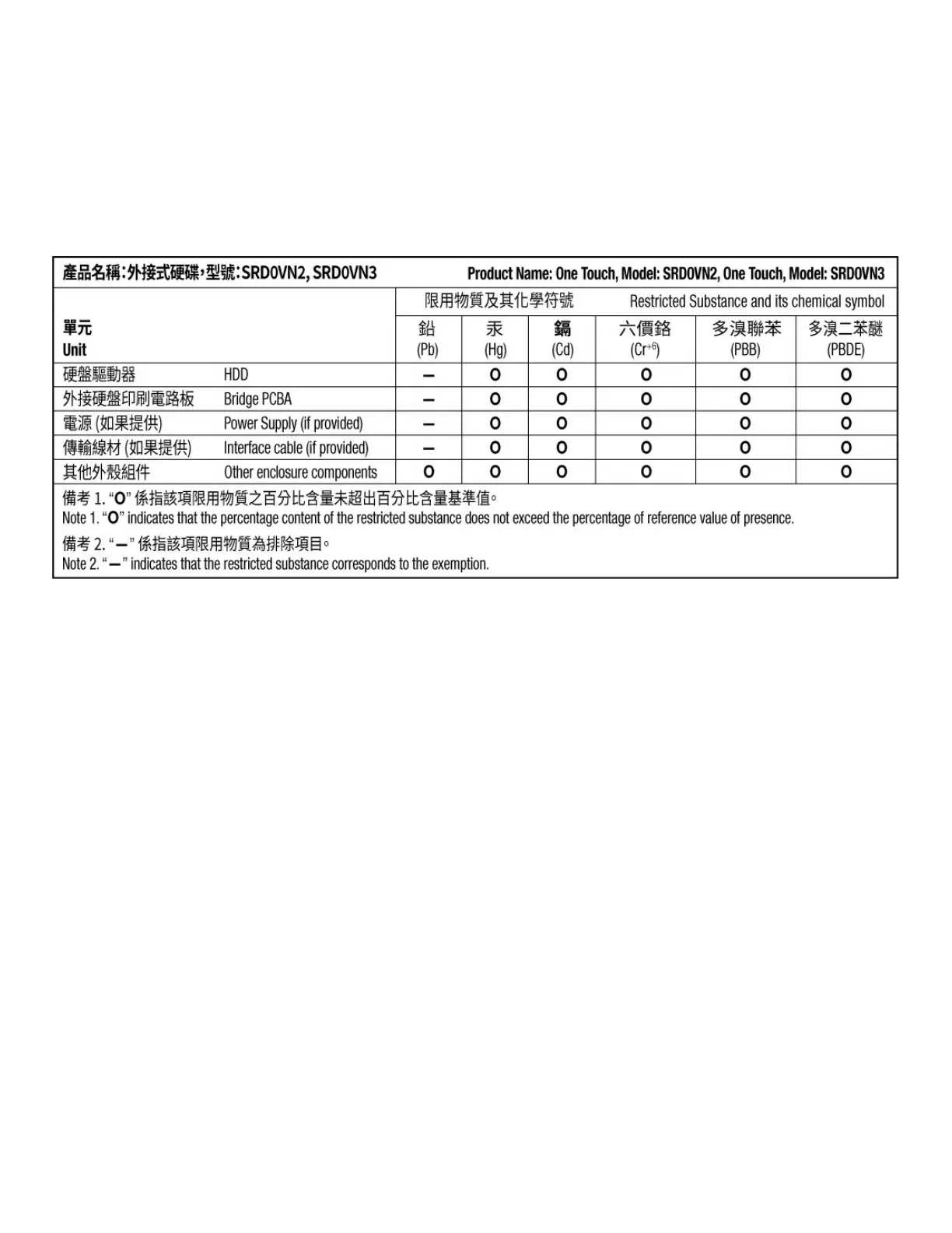 年1月1日起,Seagate產品必須符合CNS15663第5節「含有標示」要求。本產品符合台灣RoHS。 下表符合第5節