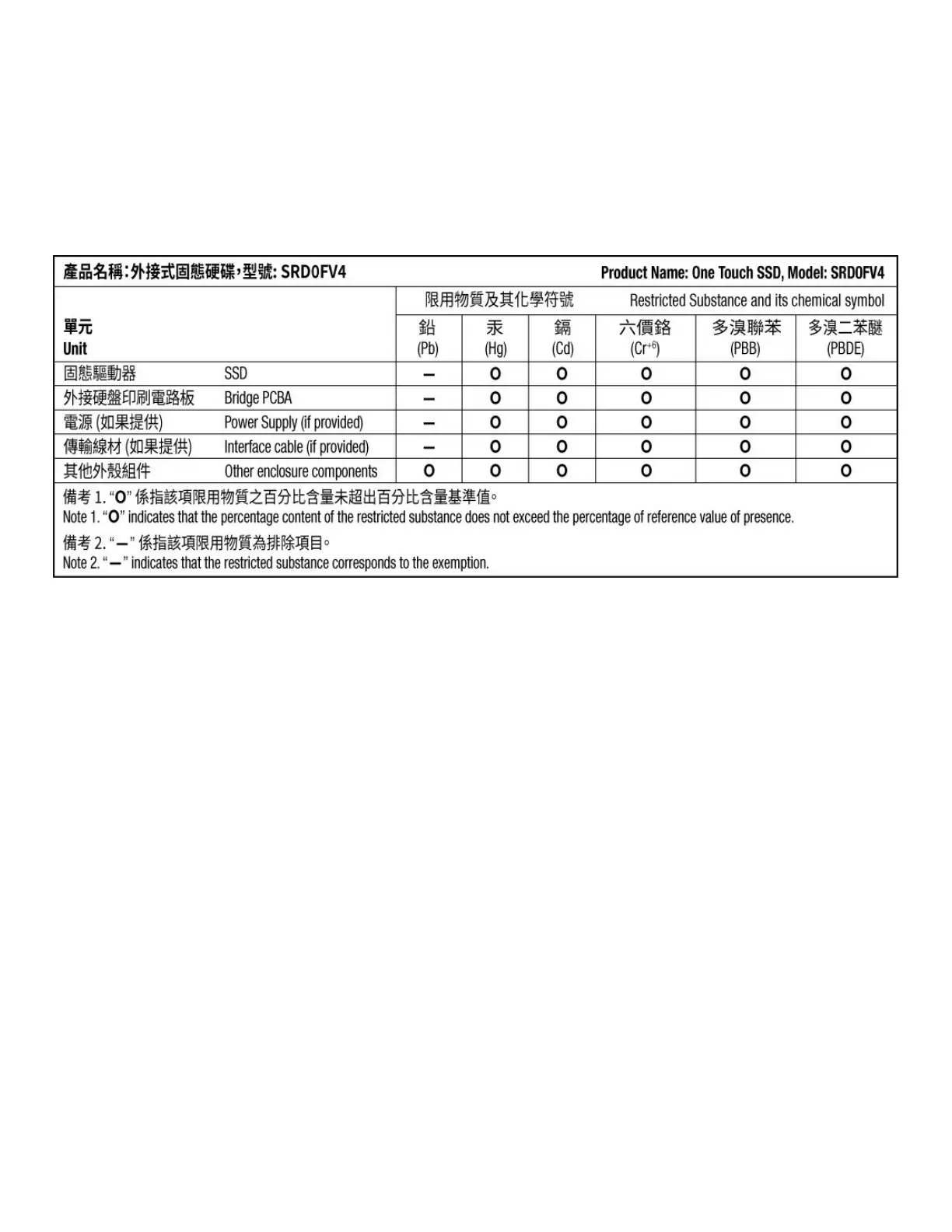 年1月1日起,Seagate產品必須符合CNS15663第5節「含有標示」要求。本產品符合台灣RoHS。 下表符合第5節