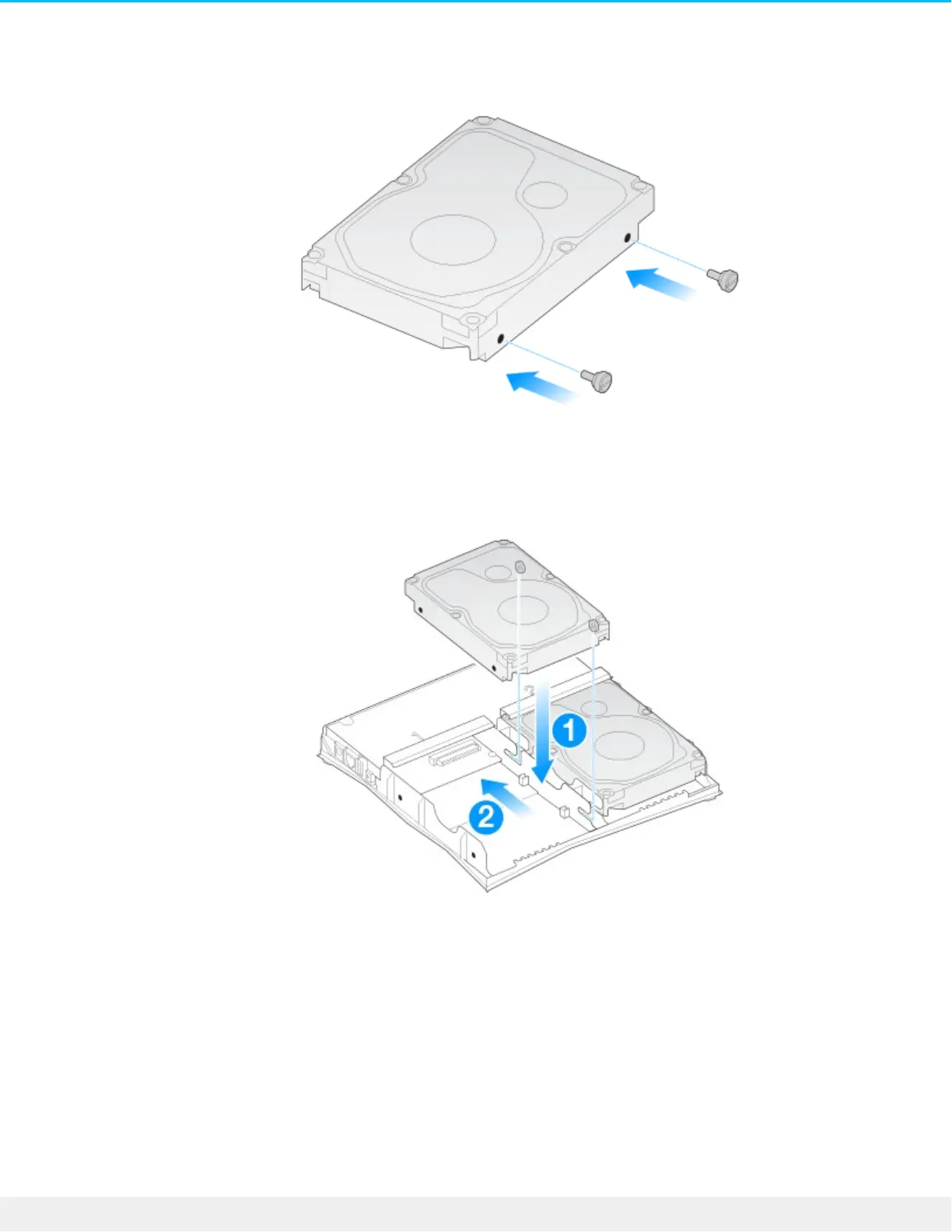 .Guide the hard drive so that the rear screw fits into its slot, and then slide the drive into its plug .2