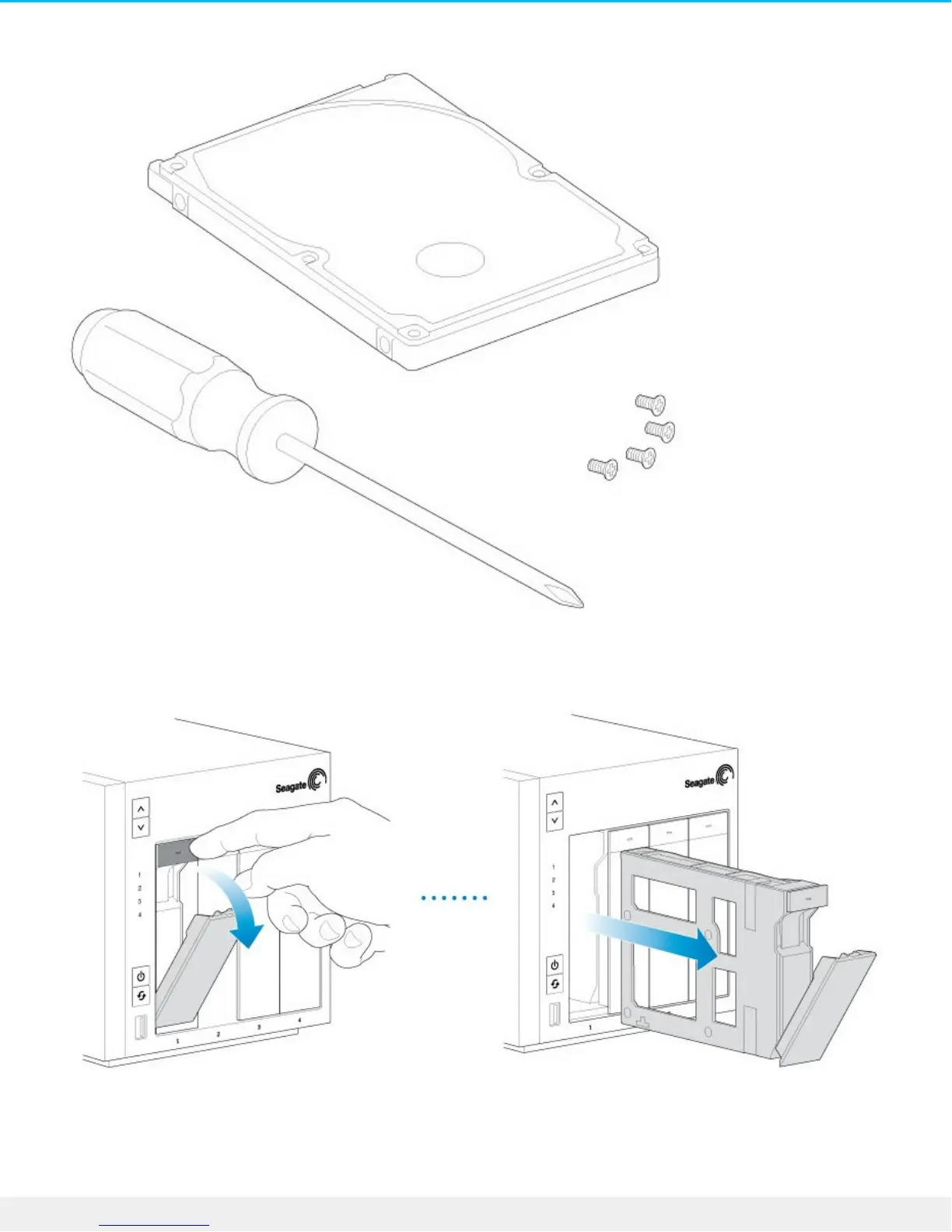 1. Remove a hard drive tray from the Seagate NAS Pro. It can be empty or filled with a hard drive you want