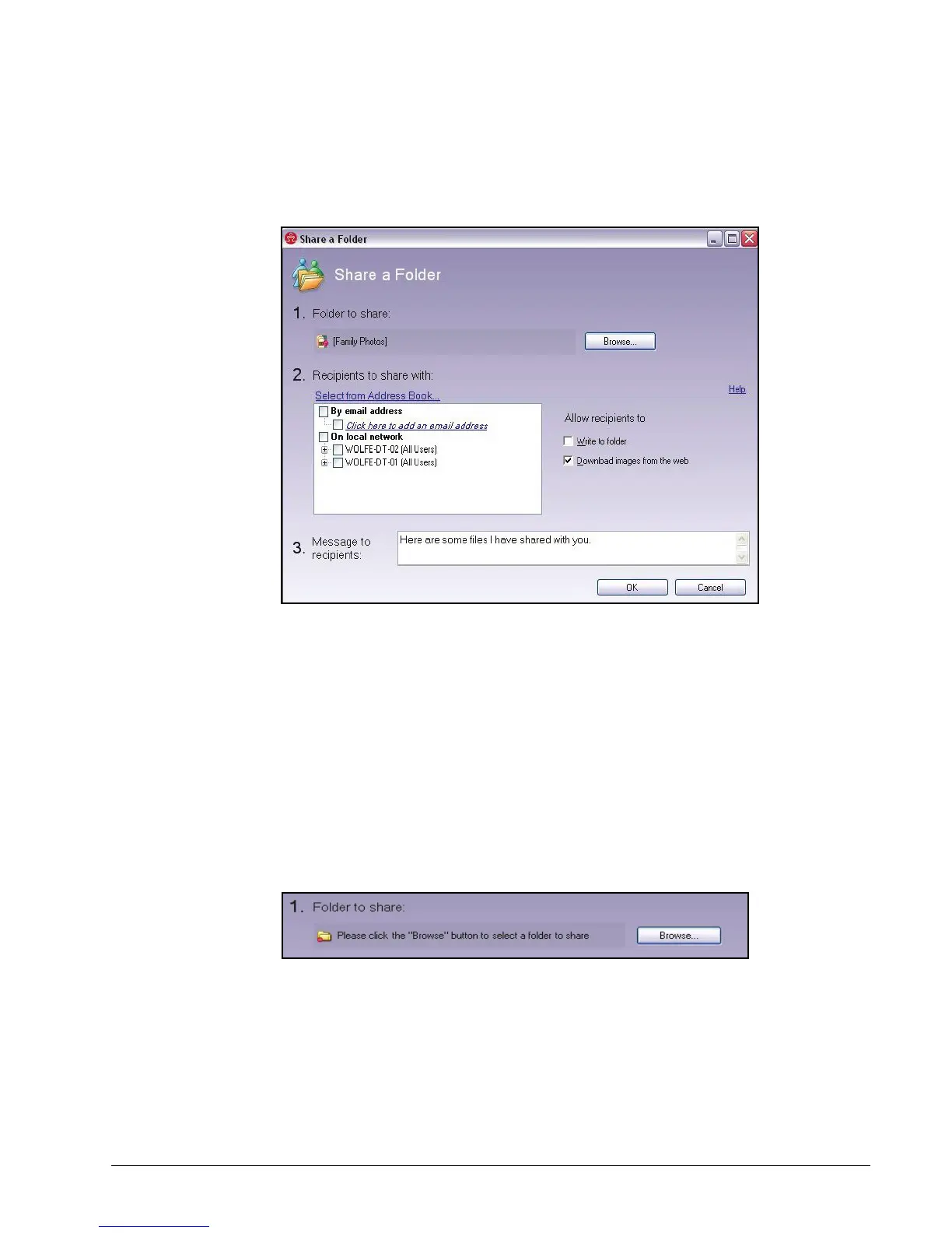 Selecting a Folder to Share