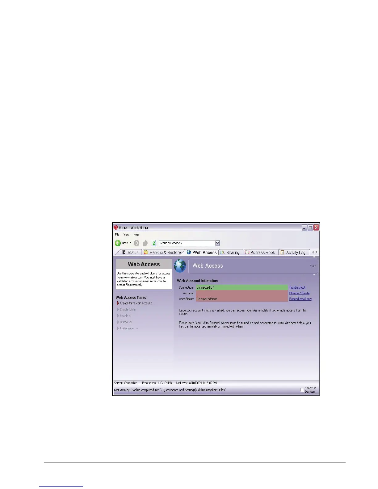 Figure 7~1 Web Access Screen - No Mirra Web Account