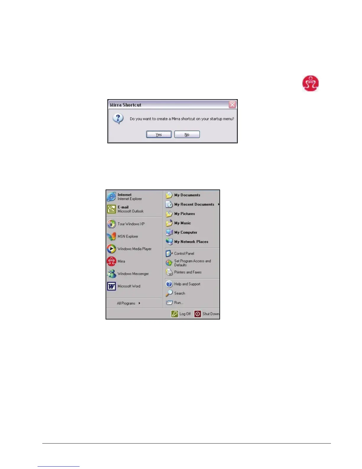 You’re asked if you want a Mirra shortcut on your startup menu: