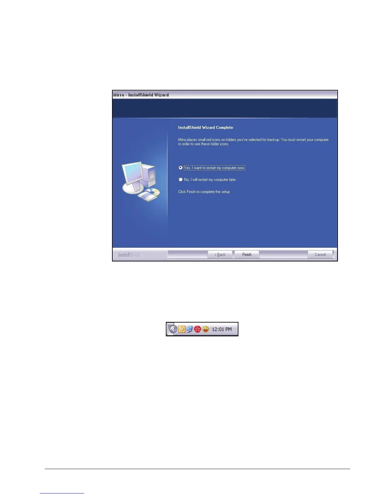 When your computer restarts, a Mirra icon appears in your System Tray: