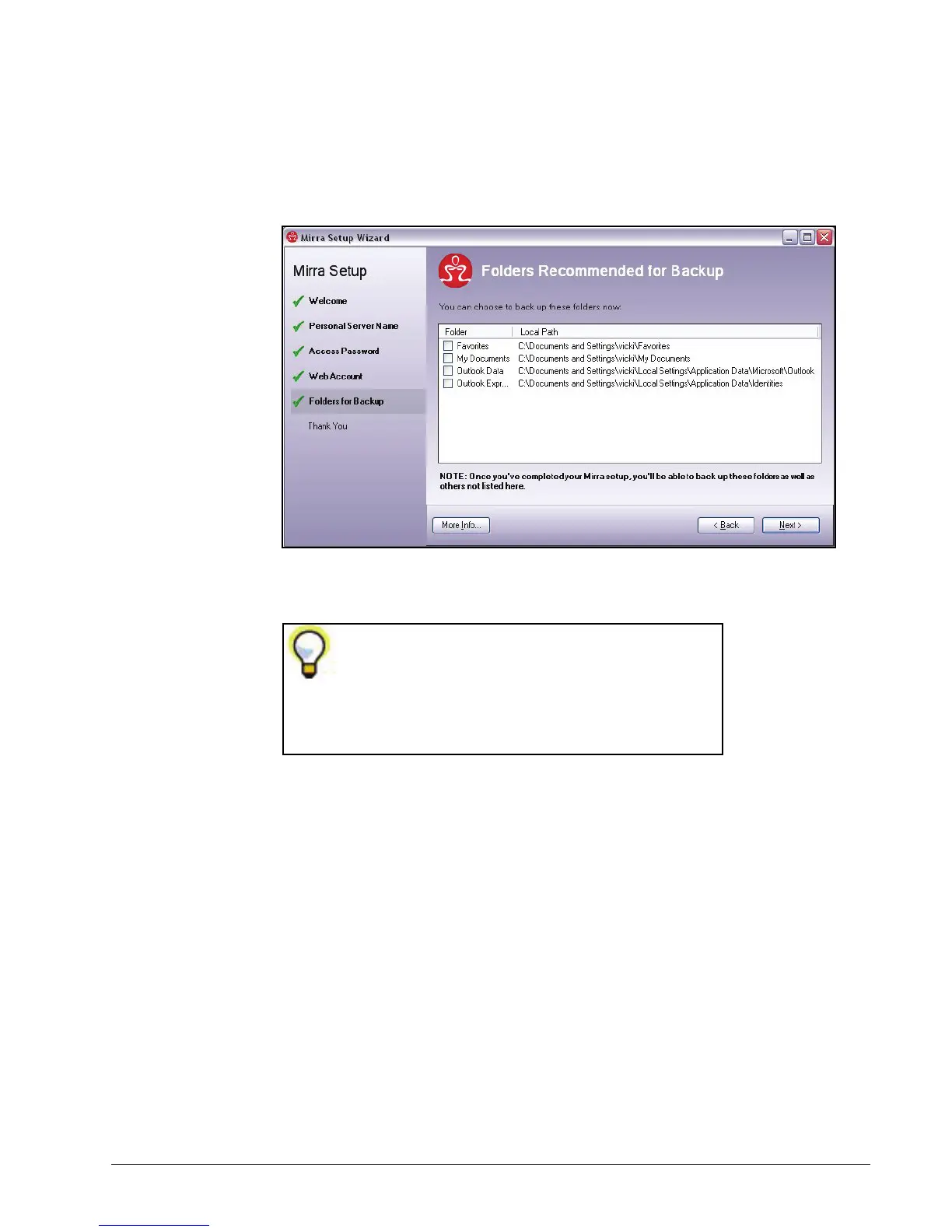 Step 6: Select the folders you want to back up to your Personal Server and click