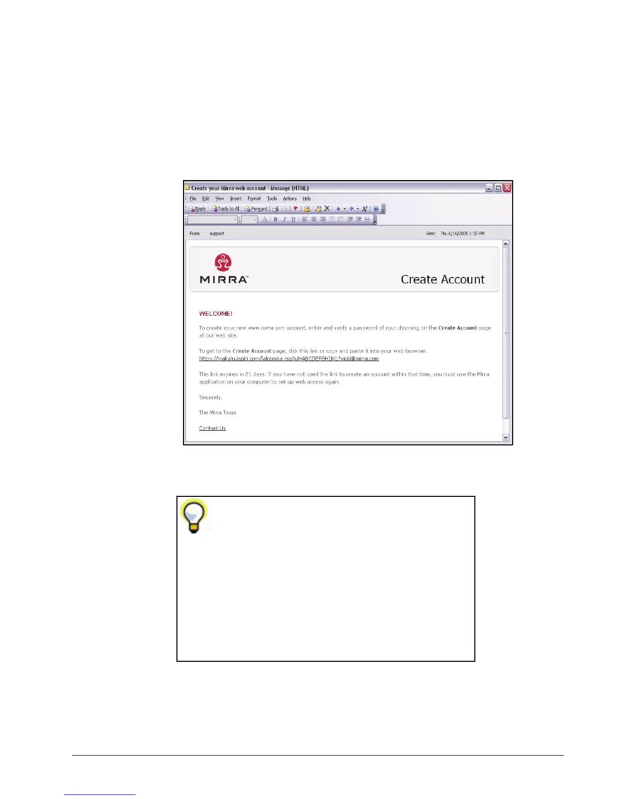 create your Mirra Web Account. Usually within a few minutes, you receive a