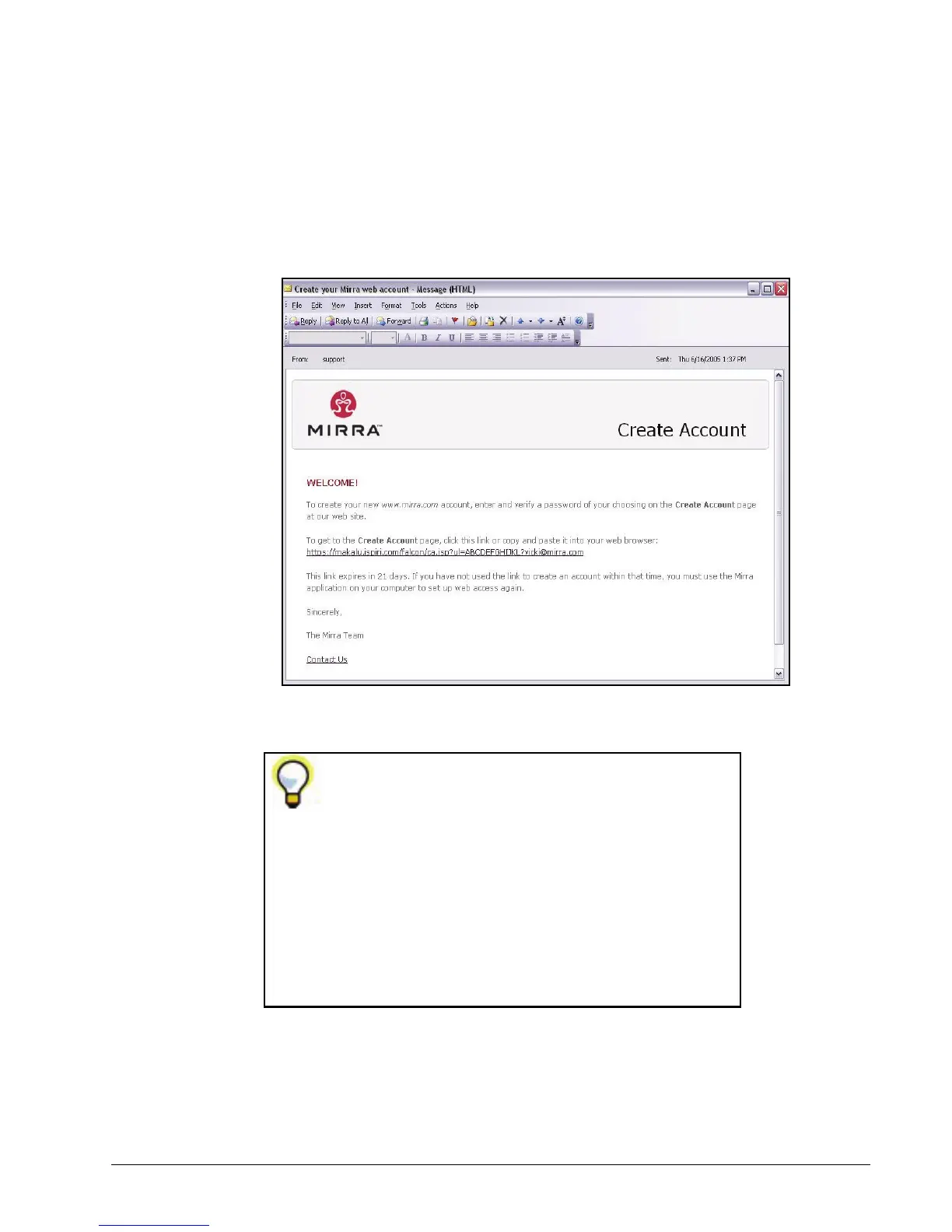 Step 5: Check your email for a message from Mirra resembling the message shown