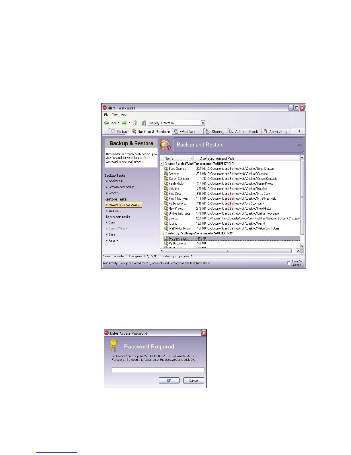 To copy a folder that’s been backed up to your Mirra by another computer,