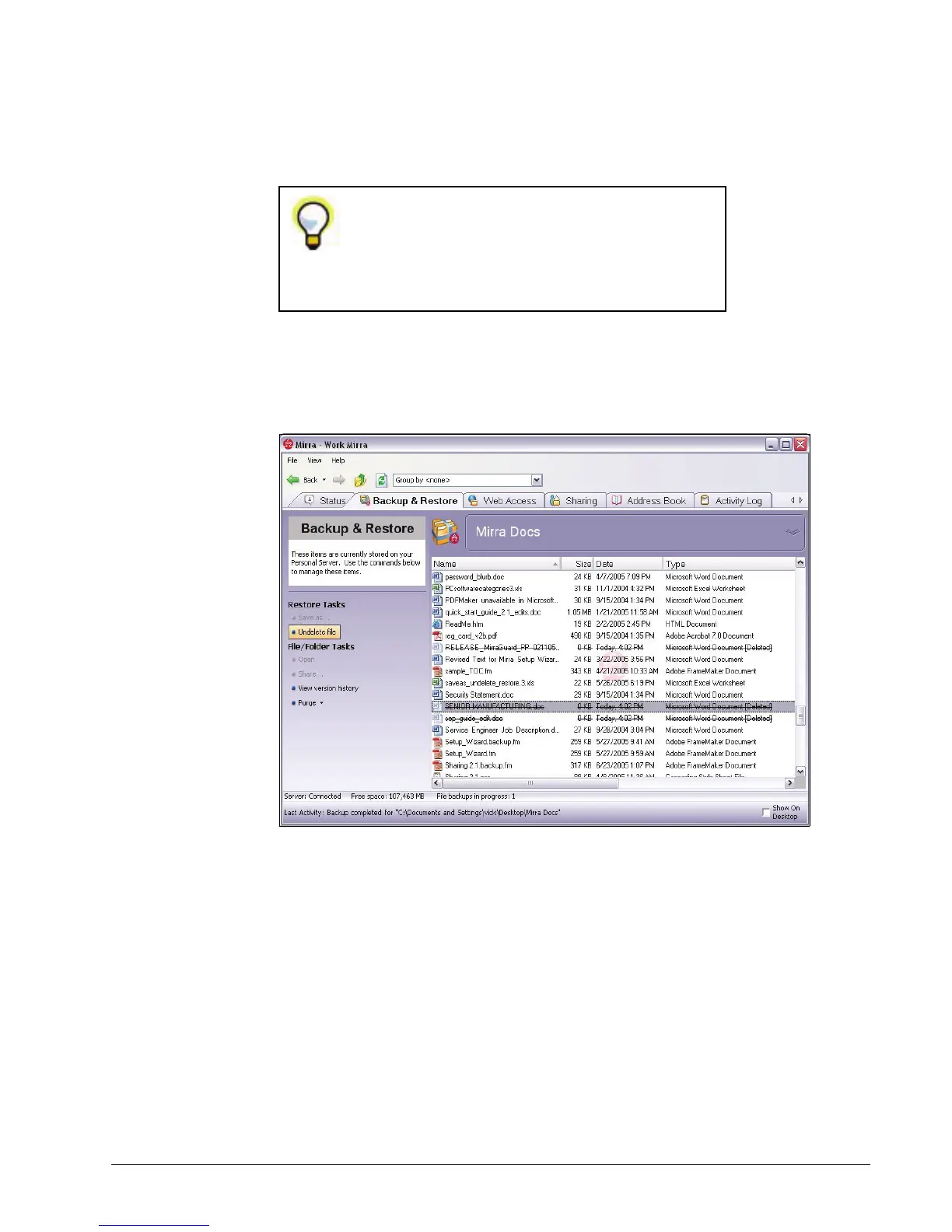 Step 1: On the Backup & Restore screen, select the file or folder to be undeleted.
