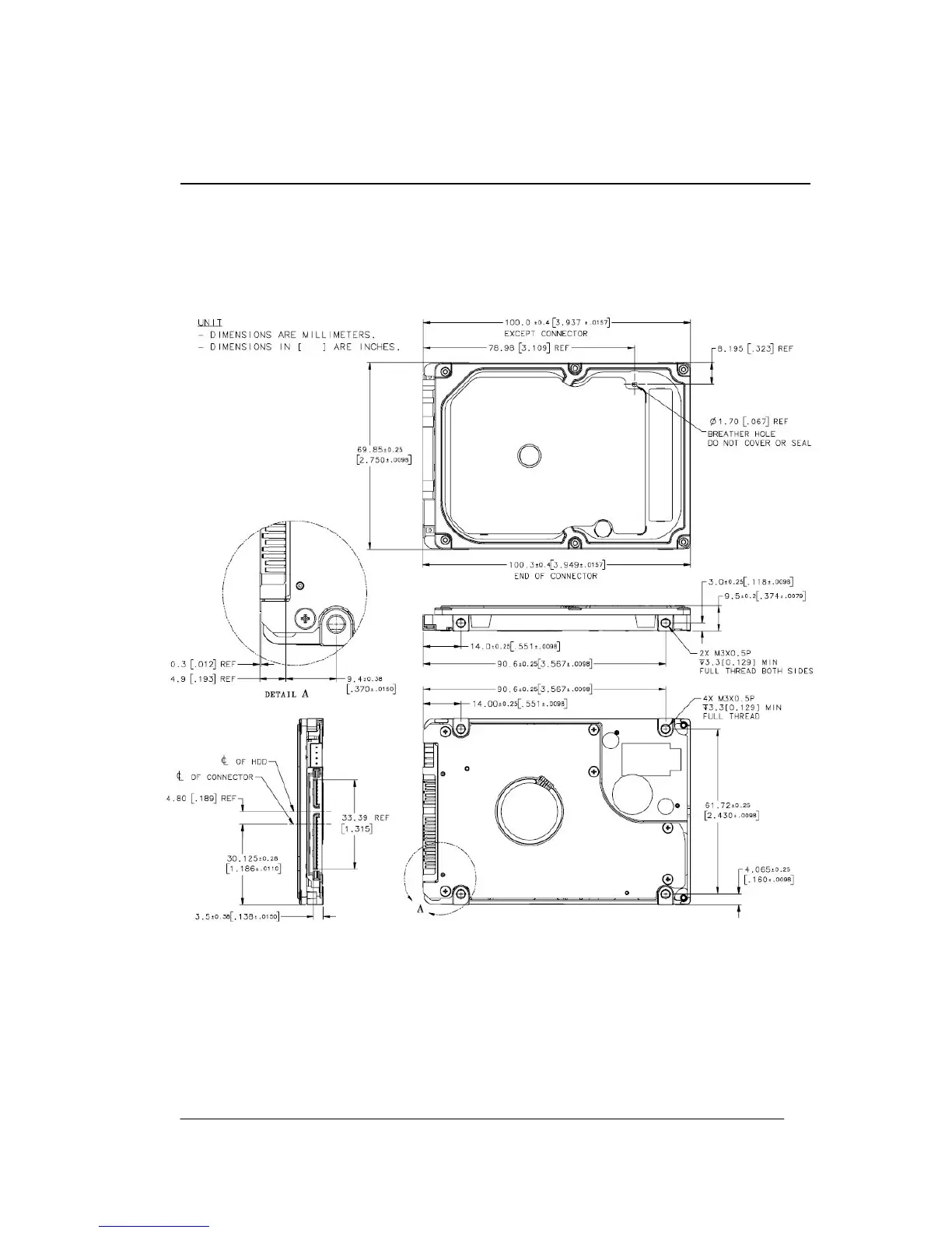 Figure 4-2 shows the physical dimensions and mounting holes located on each side of the drive. The