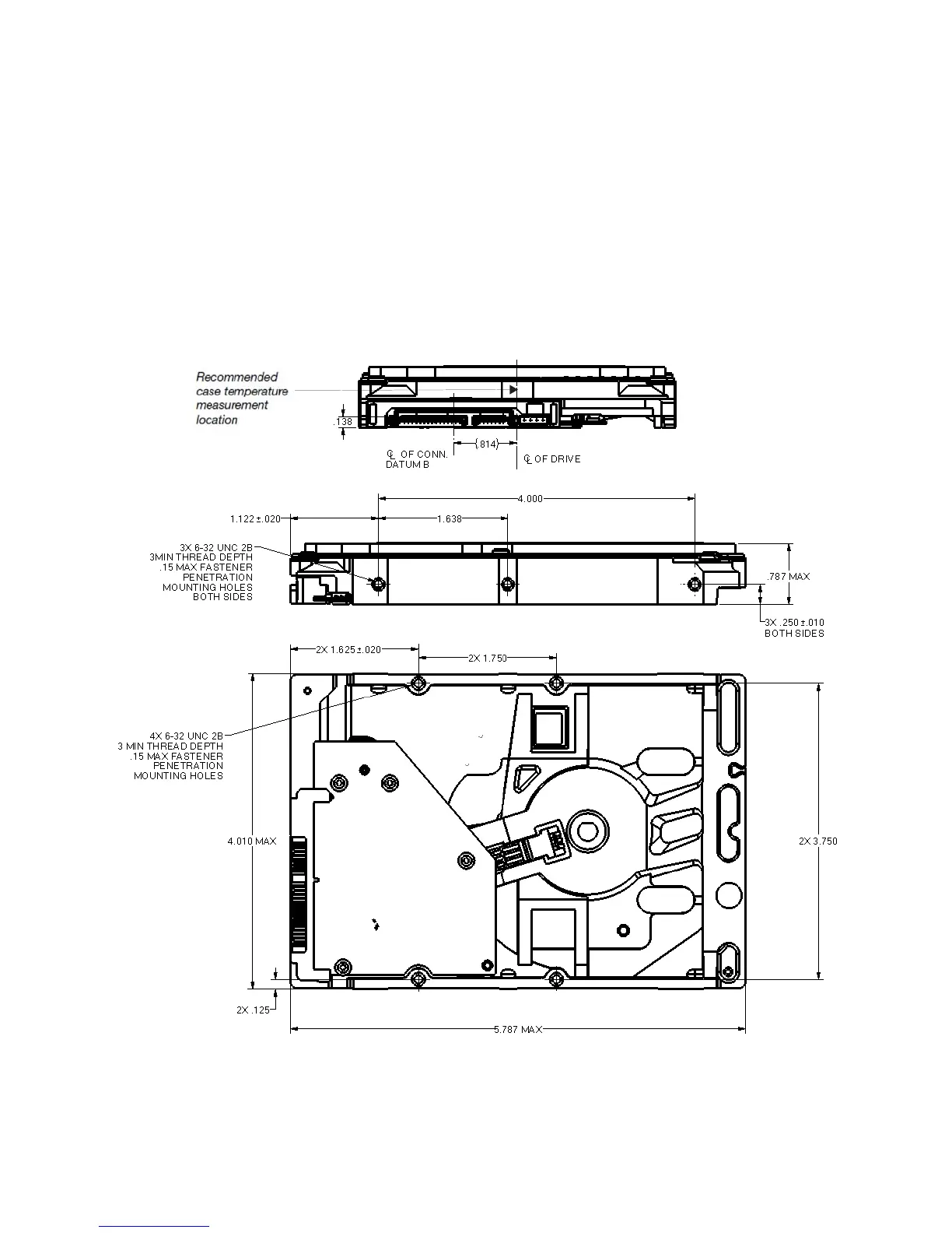 • Allow a minimum clearance of 0.030 in (0.76mm) around the entire perimeter of the drive for cooling.