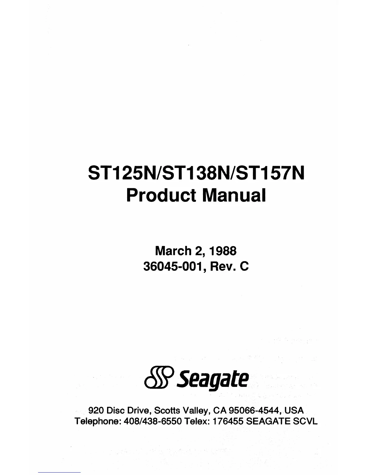 Telephone: 408/438-6550 Telex: 176455 SEAGATE SCVL