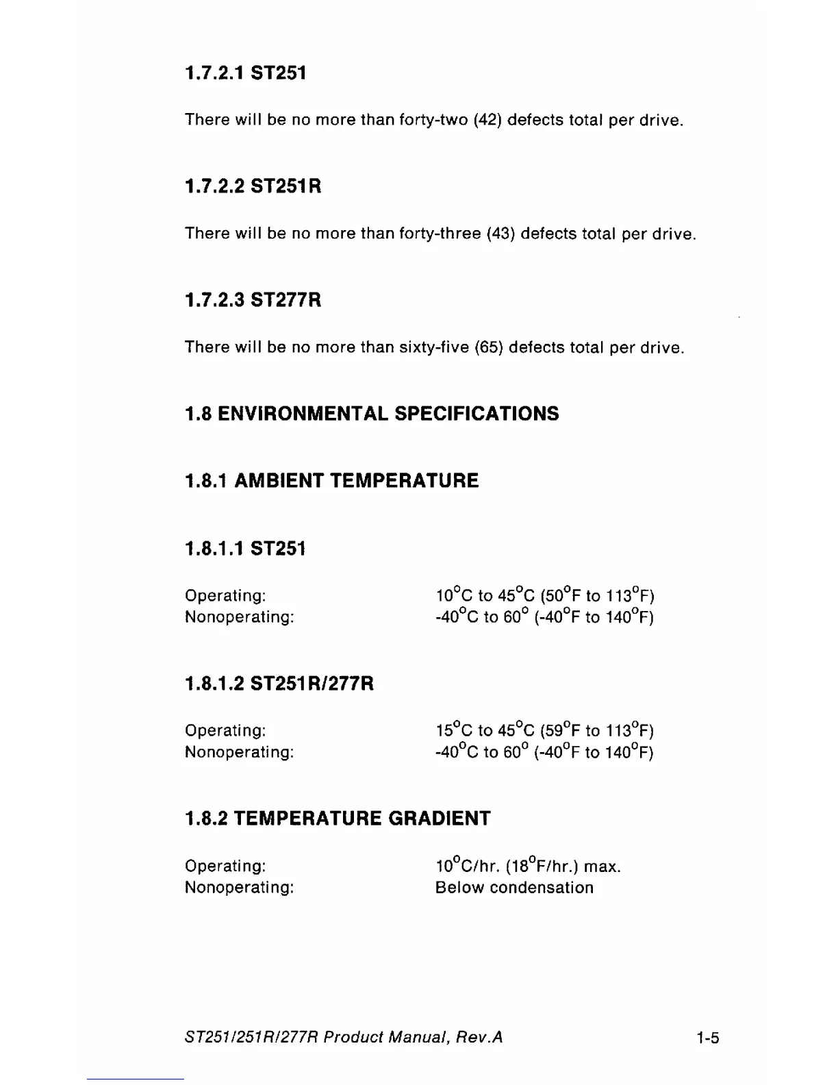 Seagate ST251R - St277 R; Environmental Specifications; Ambient Temperature; St251