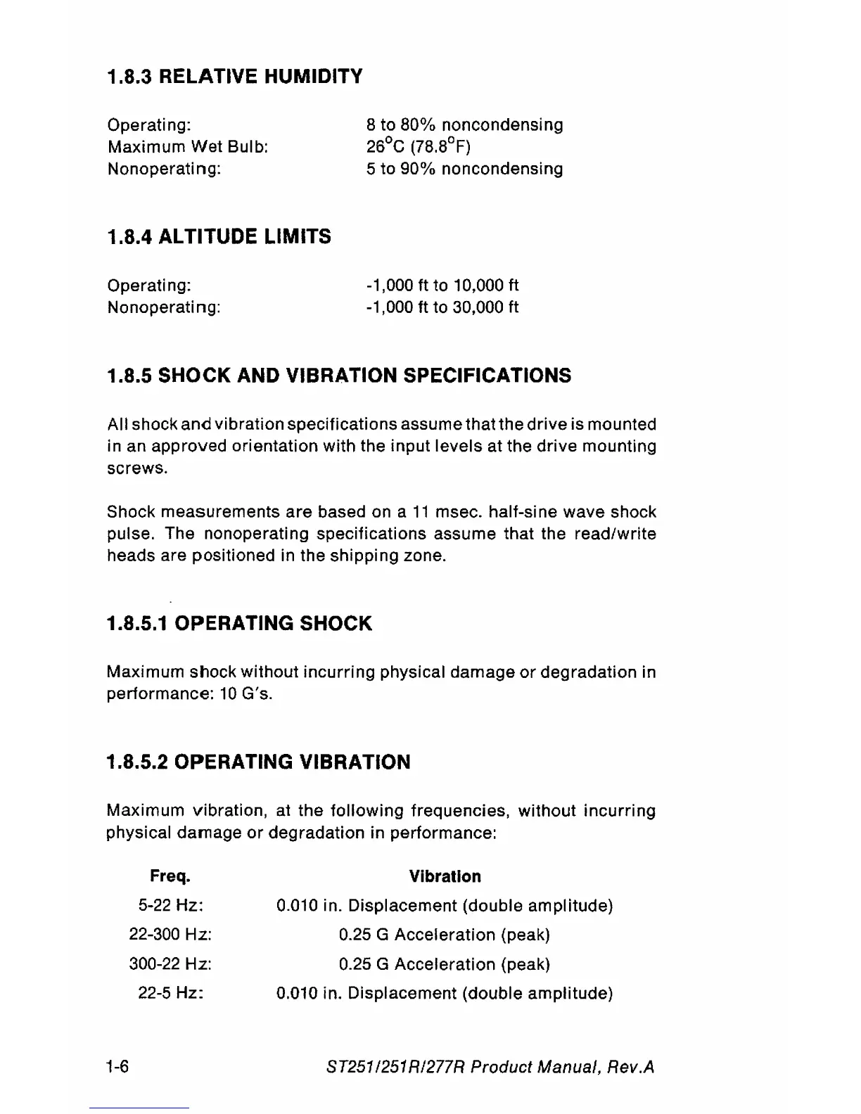 1.8.5 SHOCK AND VIBRATION SPECIFICATIONS