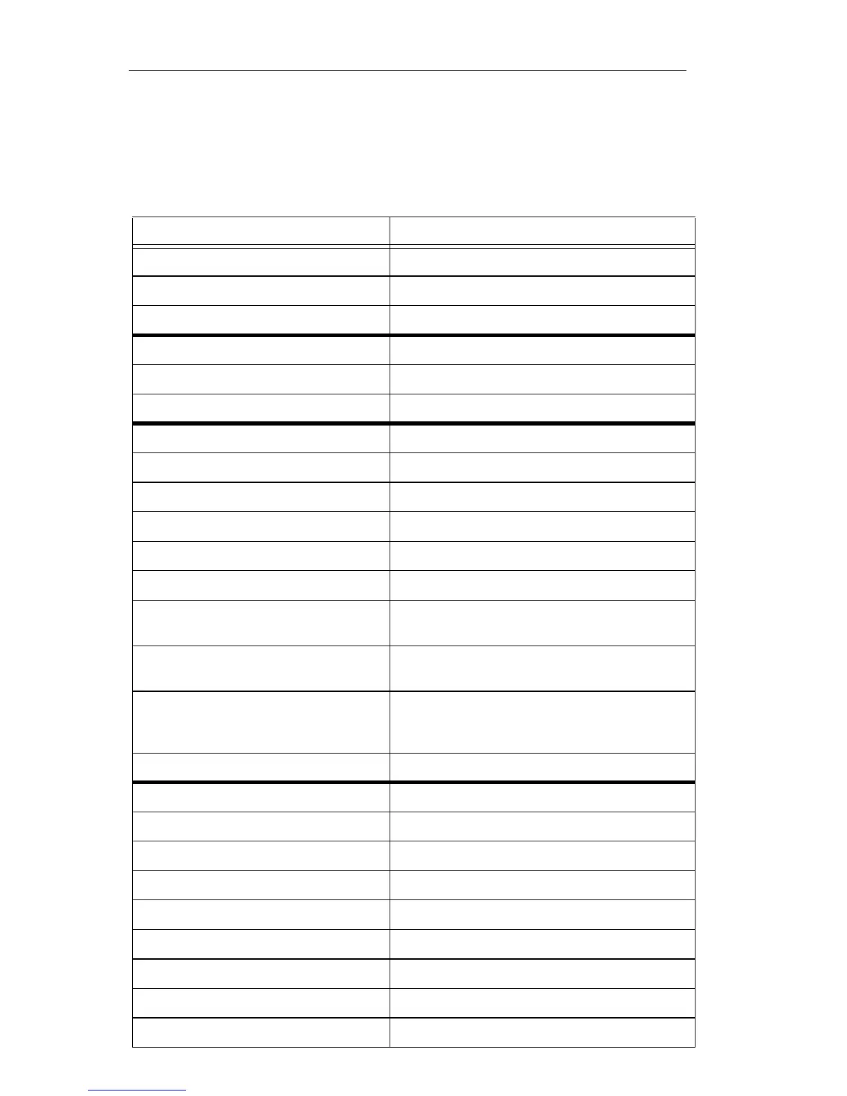 Specification summary table
