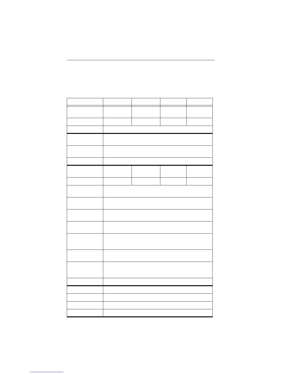 Specification summary table