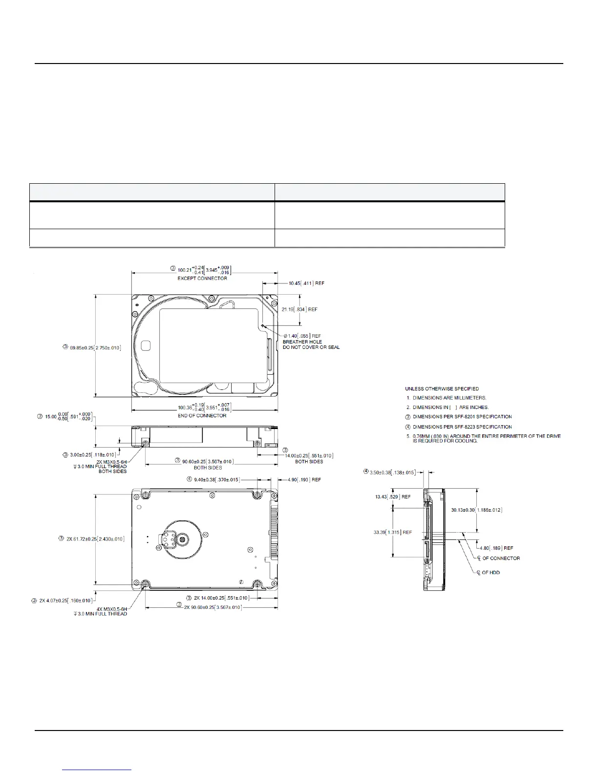 • Allow a minimum clearance of 0.030 in (0.76 mm) around the entire perimeter of the drive for cooling.