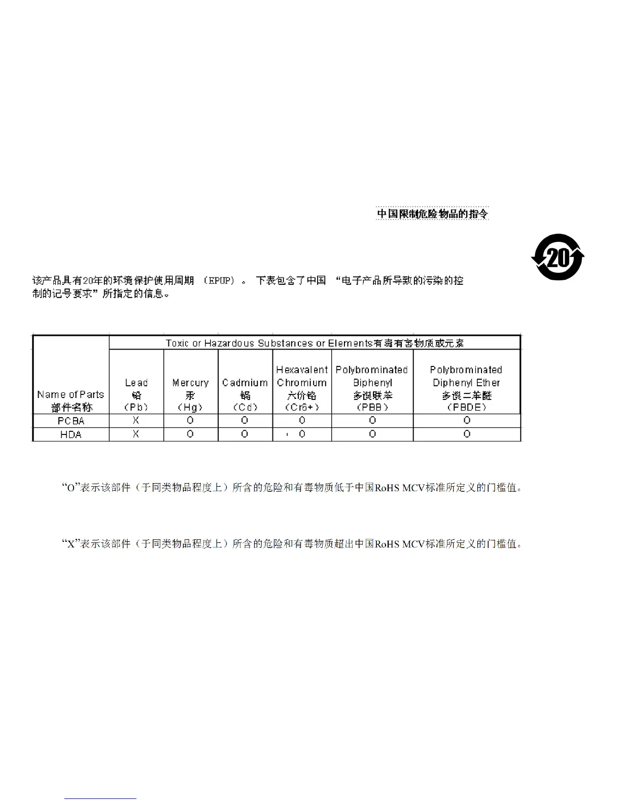 2.15.2 China Restriction of Hazardous Substances (RoHS) Directive