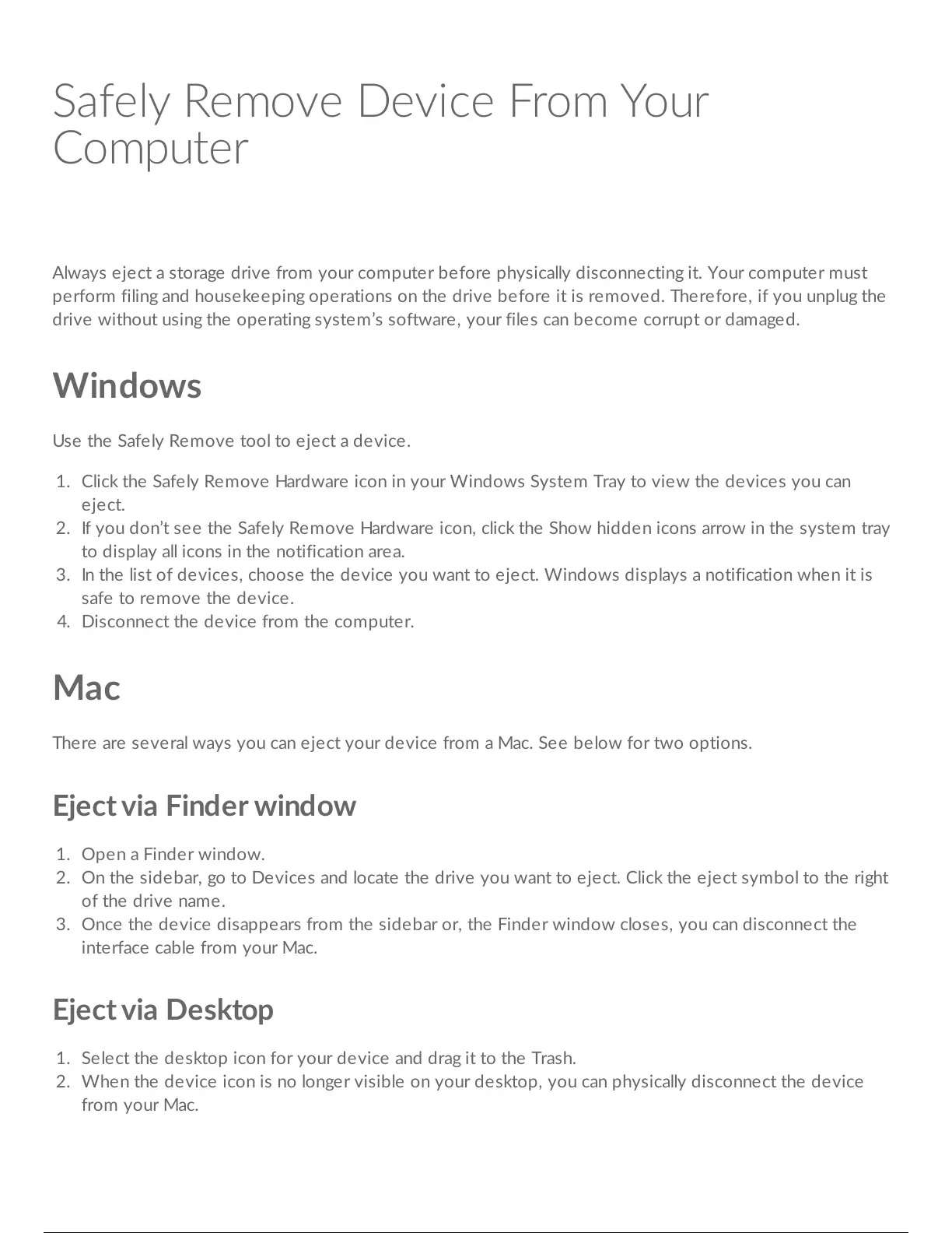 perform filing and housekeeping operations on the drive before it is removed. Therefore, if you unplug the