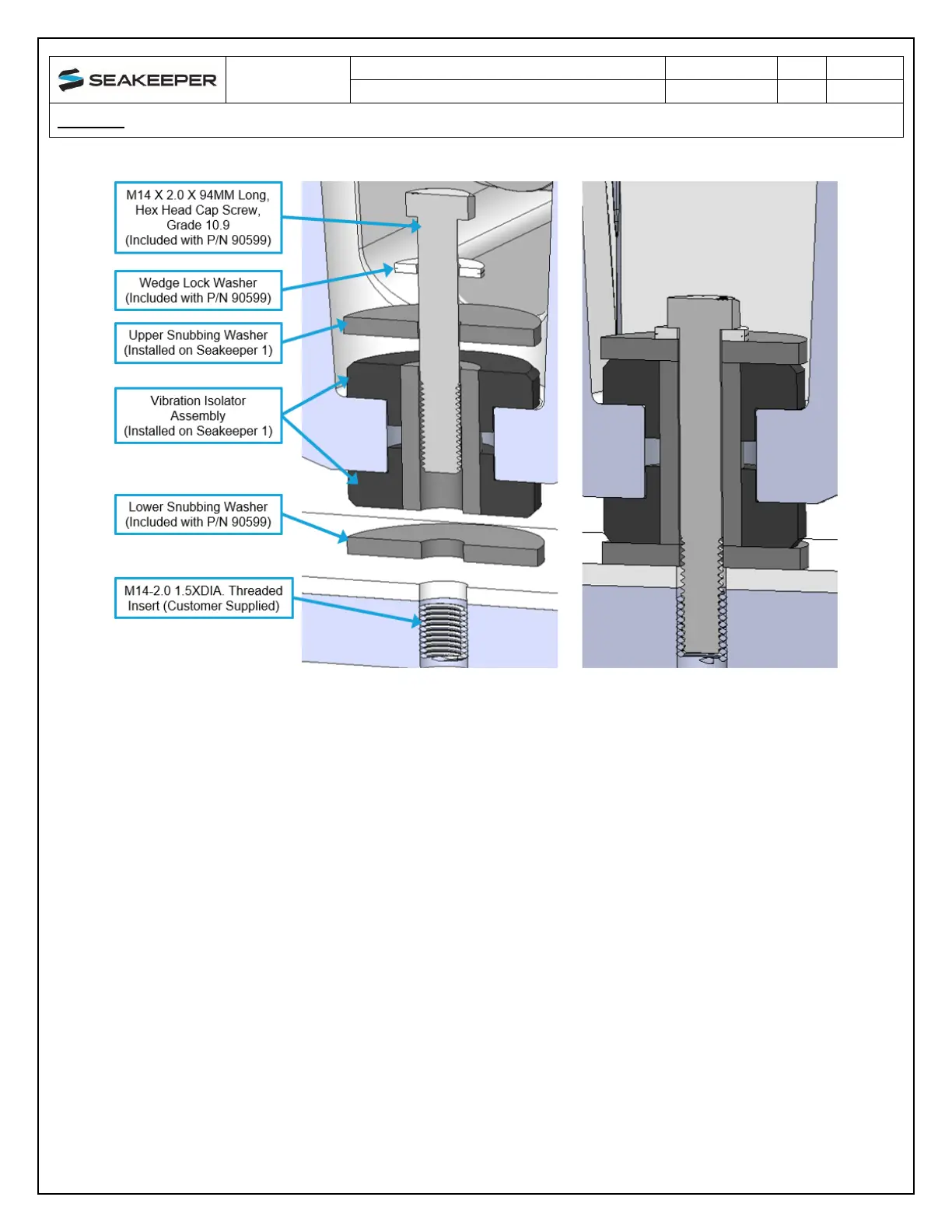 Figure 8: Seakeeper 1 Bolt Stack Arrangement Exploded (left) / Installed (right) (P/N 90599)