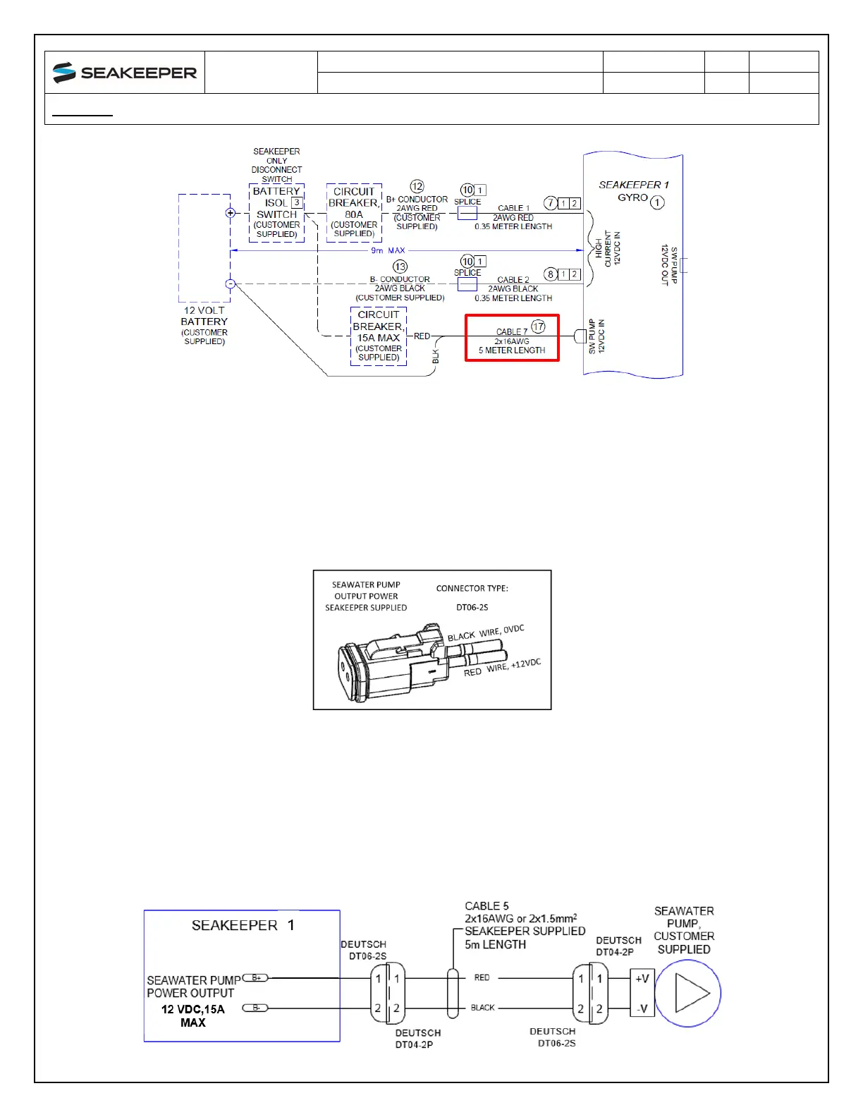 3. CABLE 5 must be routed and installed in the vessel from the Seakeeper 1 “SW Pump 12VDC