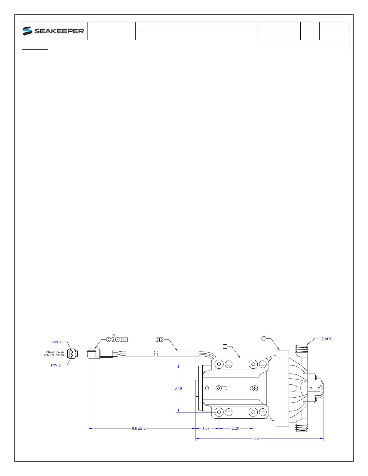 pump assembly is pre-wired for connection to Seakeeper 1 CABLE 5 and includes