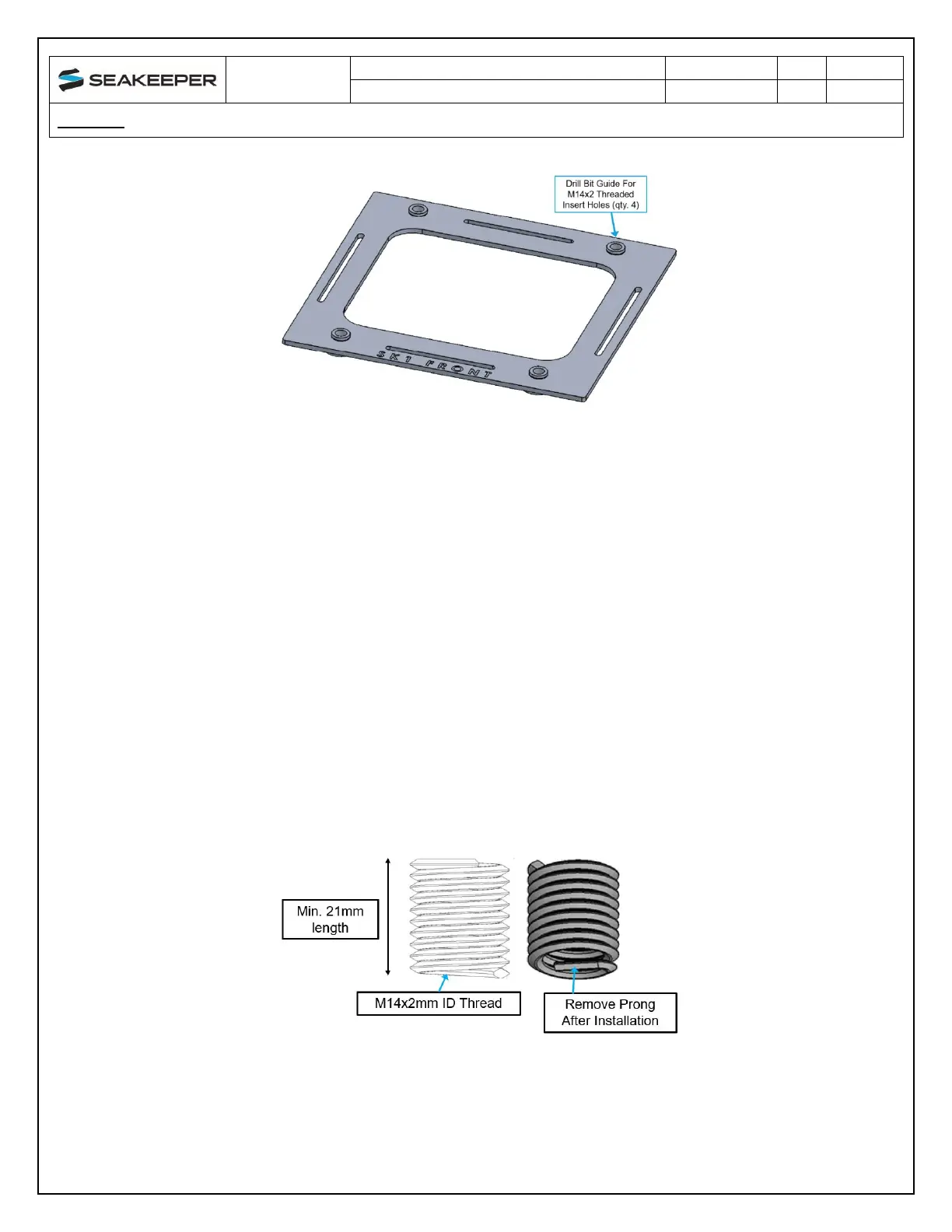 threaded inserts in vessel structure at marked locations to mate with holes in the Seakeeper
