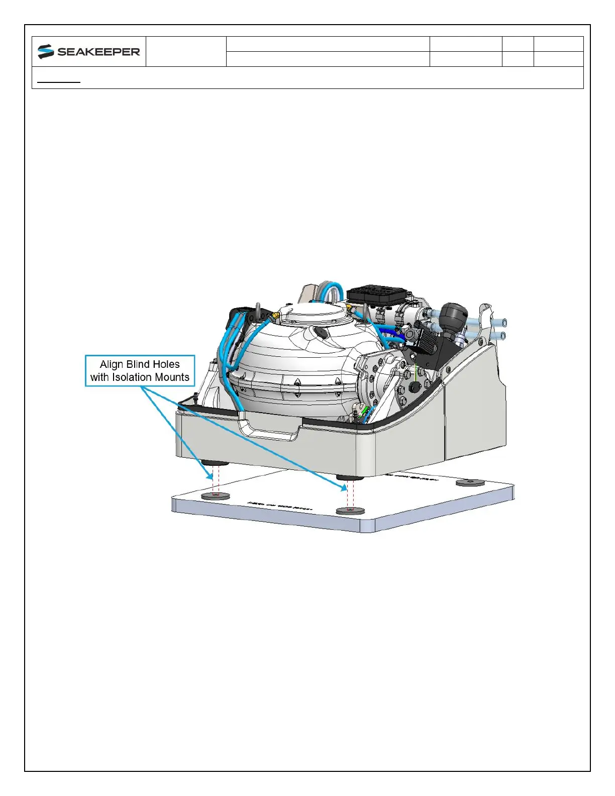2. Lower the Seakeeper 1 onto the lower snubbing washer on the vessel structure and align over