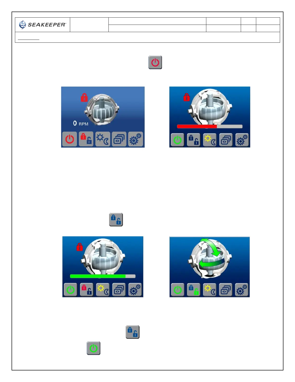 5) Press the GYRO ON/OFF Button on Display. The RED LOCK ICON and the PROGRESS BAR