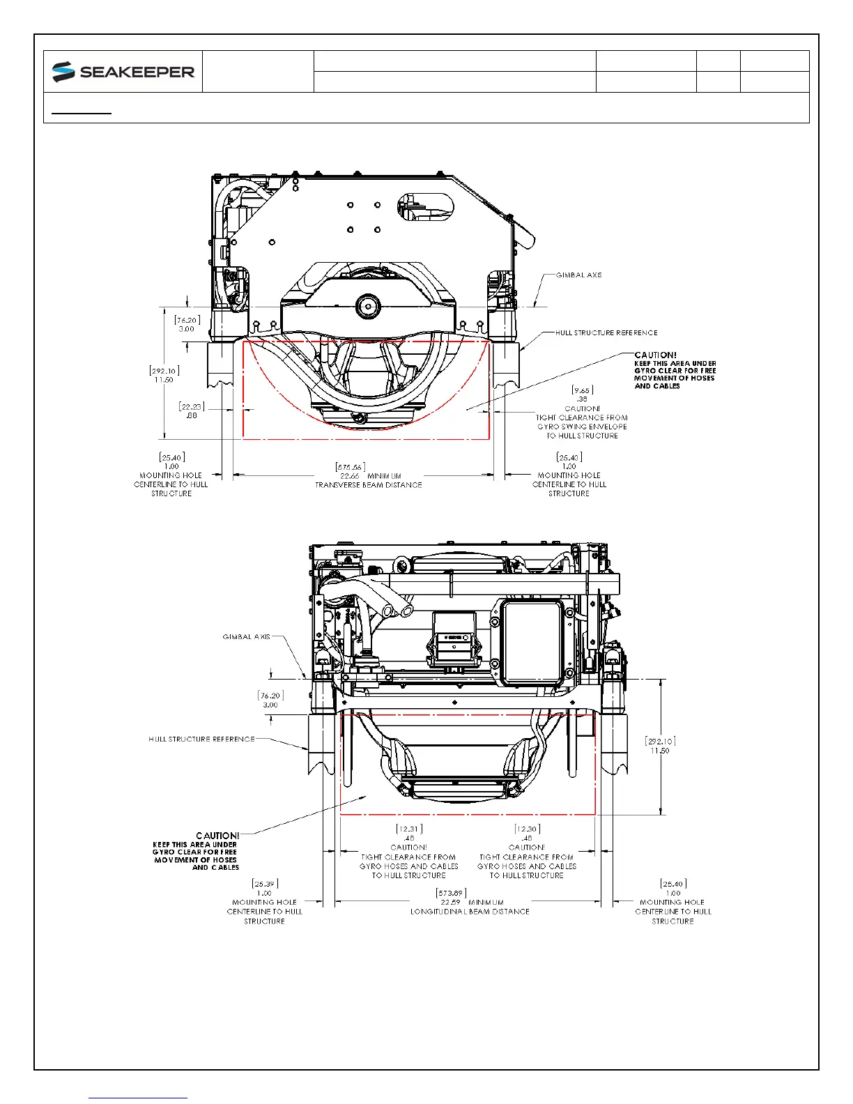 Clearances aft of the Seakeeper are shown to provide access for regular scheduled