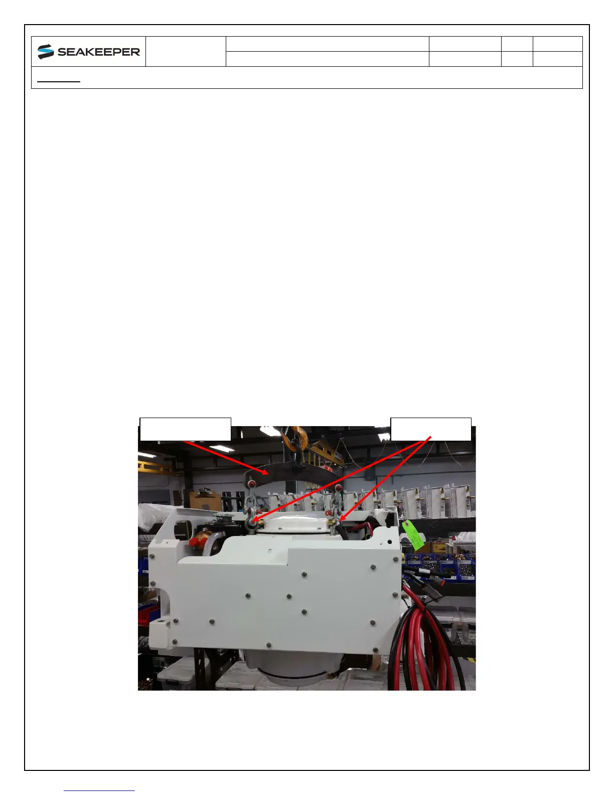 4) Attach a spreader bar (Seakeeper #80283) to the two lifting eyes located on the top of