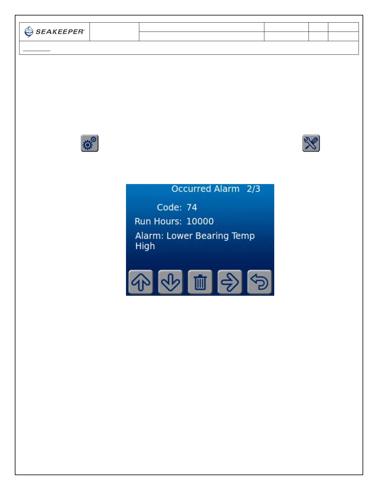 The Service page on the Display shows the recent alarms and warnings. The alarms and warnings are in