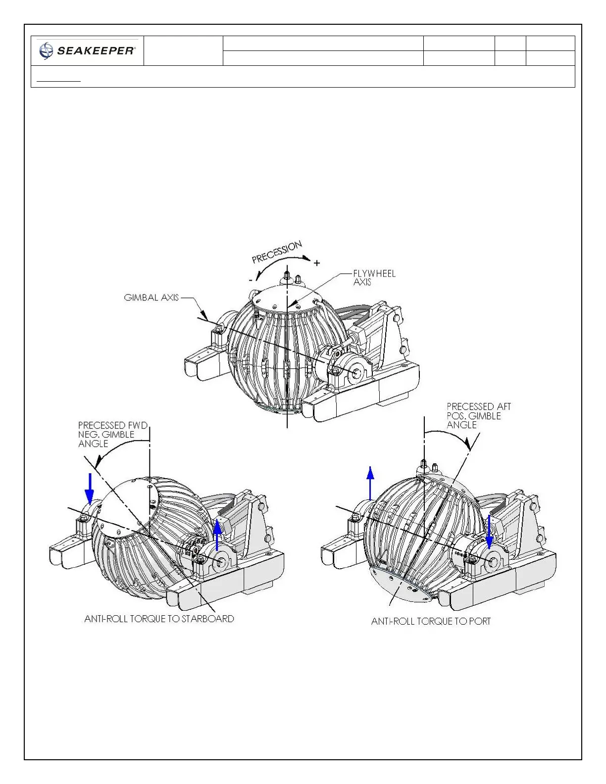 Seakeeper gyro precession is actively controlled by an electronic controller and a hydraulic brake