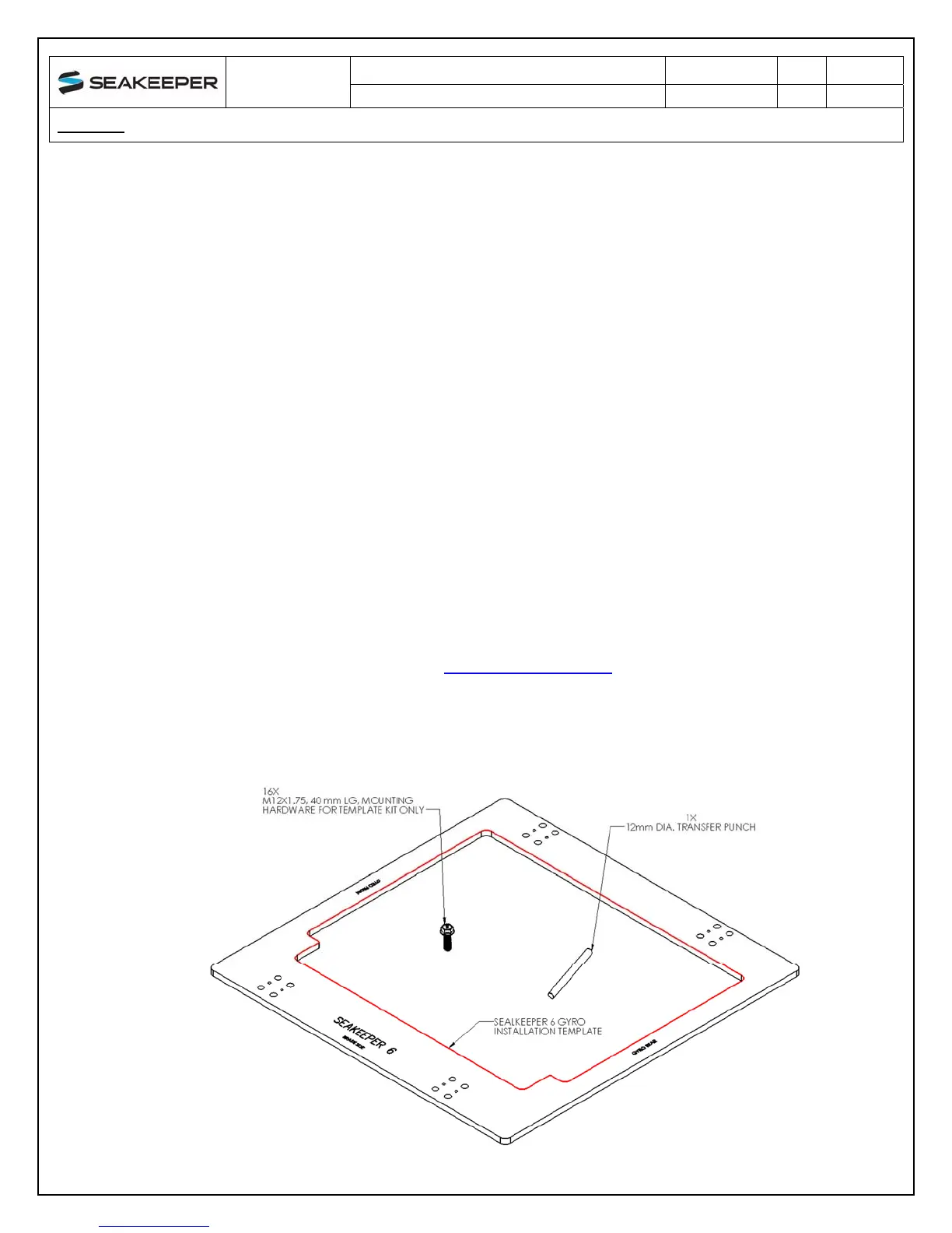Refer to Seakeeper Drawing No. 90398, Seakeeper 6 Installation Details – Bolt in Method.