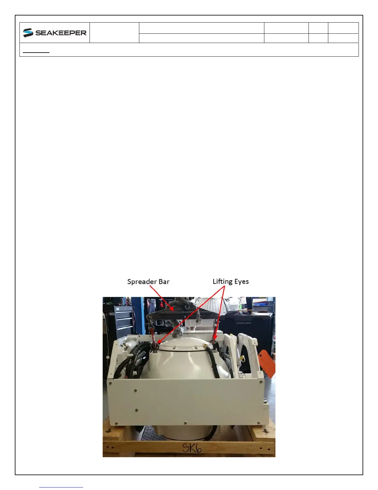 5) Attach spreader bar to the two lifting eyes located on the top of the Seakeeper enclosure.