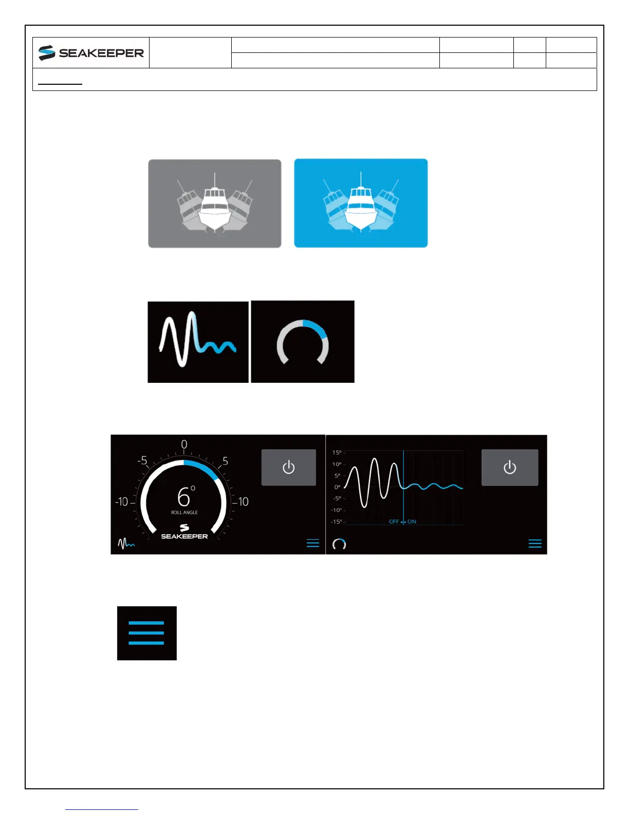 Seakeeper On/Off. The button will change from grey (Seakeeper Off) to blue