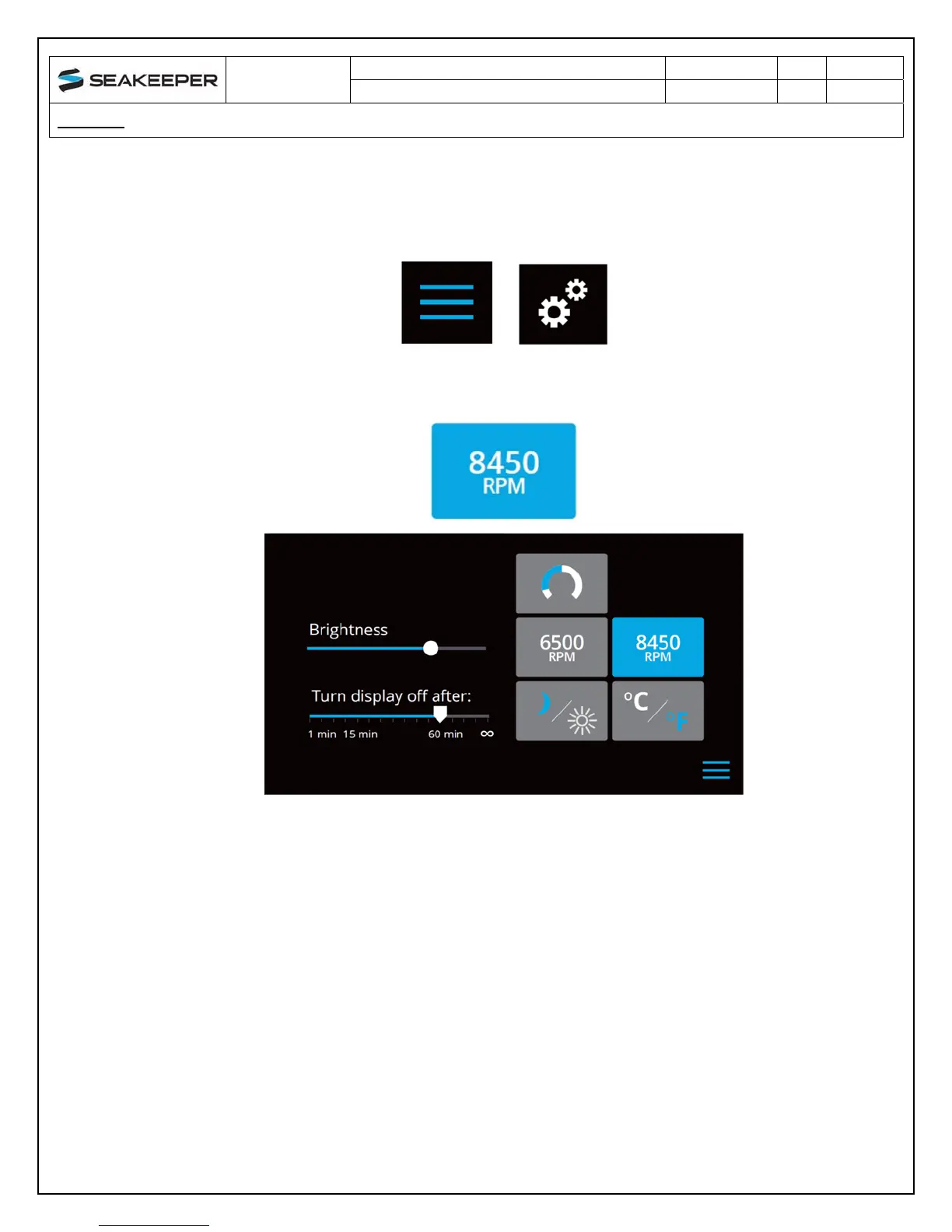 2) Select the desired RPM button to adjust the Seakeeper’s speed. The selected RPM