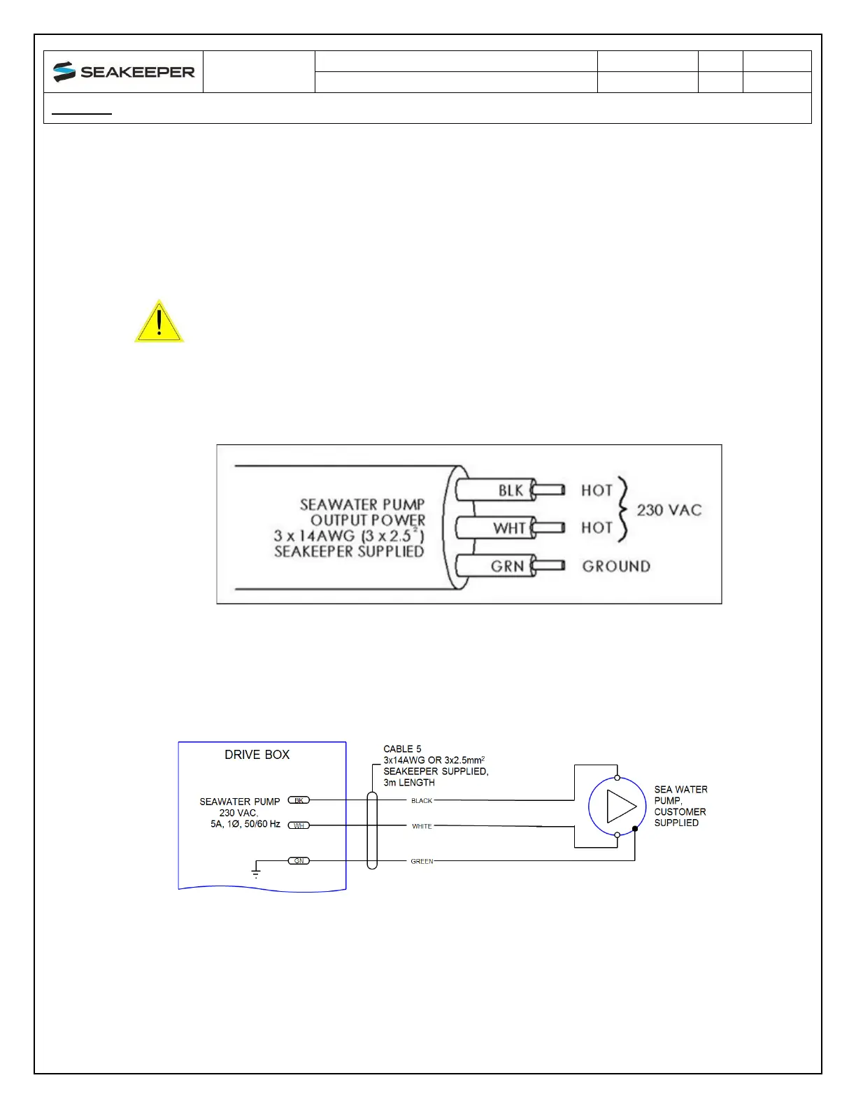 c. If the customer-supplied Seawater Pump is not rated for 230 VAC, the CABLE 5