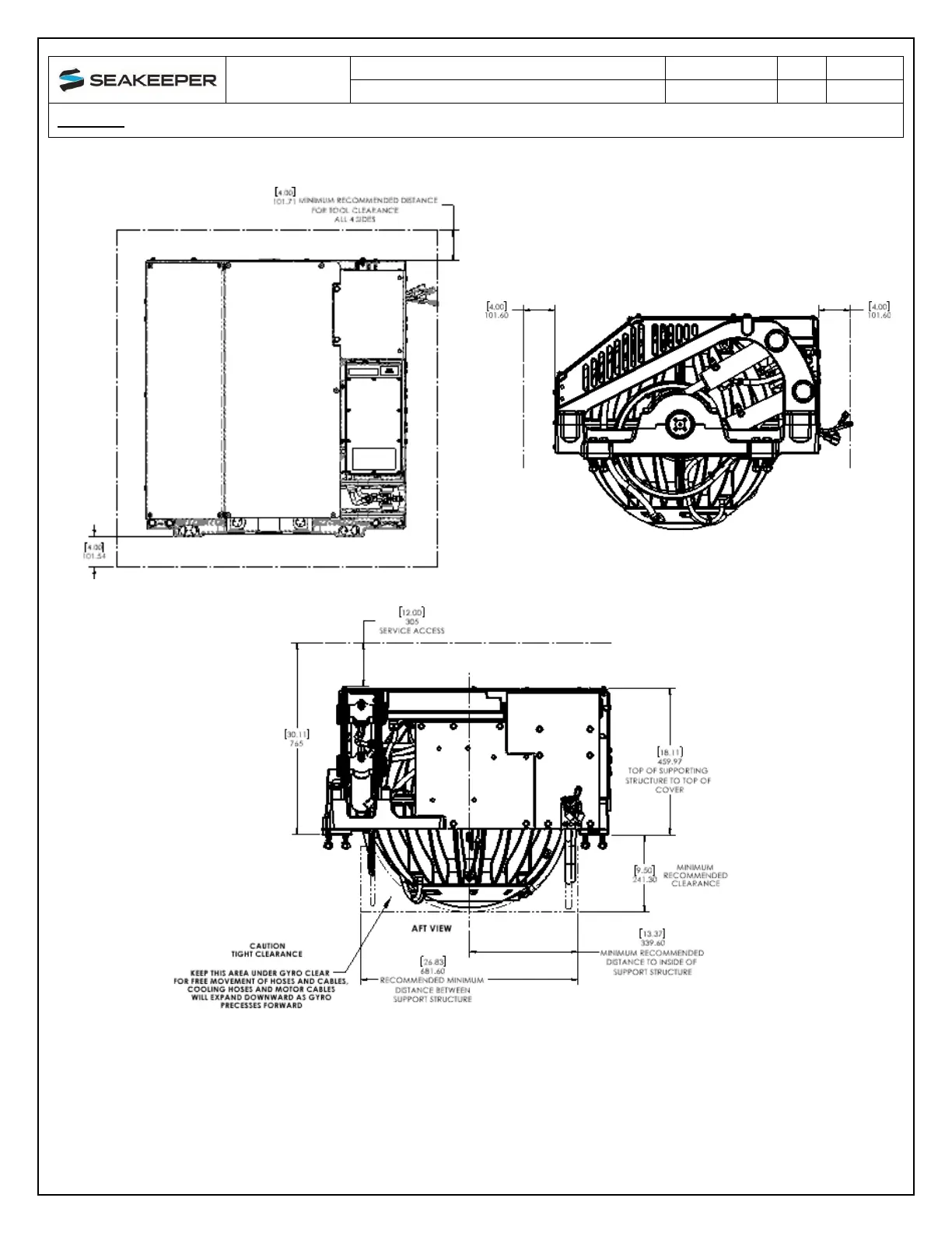 VIEWS SHOWING RECOMMENDED SERVICE CLEARANCES AROUND THE SEAKEEPER FOR USE OF