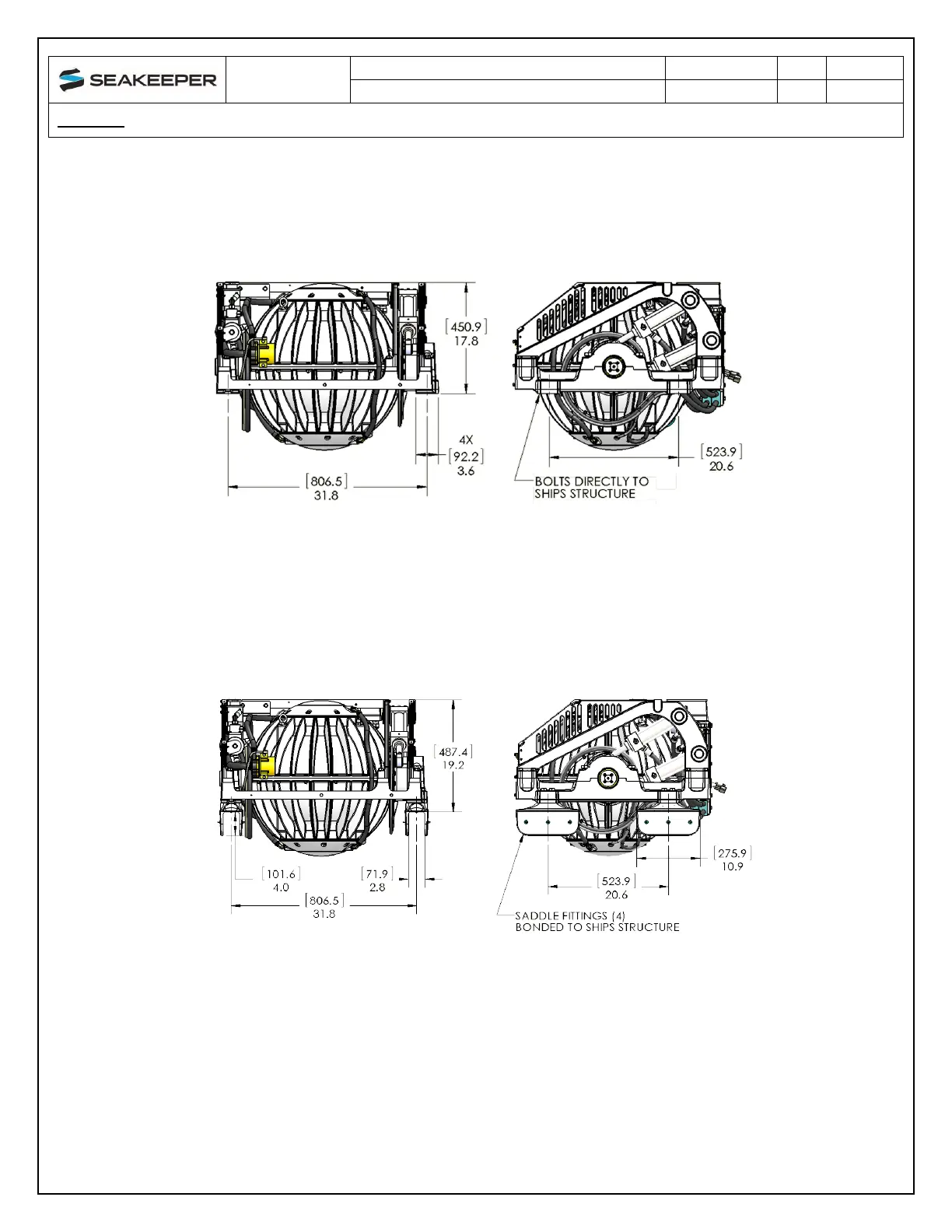 The Seakeeper 9 can be affixed to the hull structure using two methods 1) Bolt-In installation or