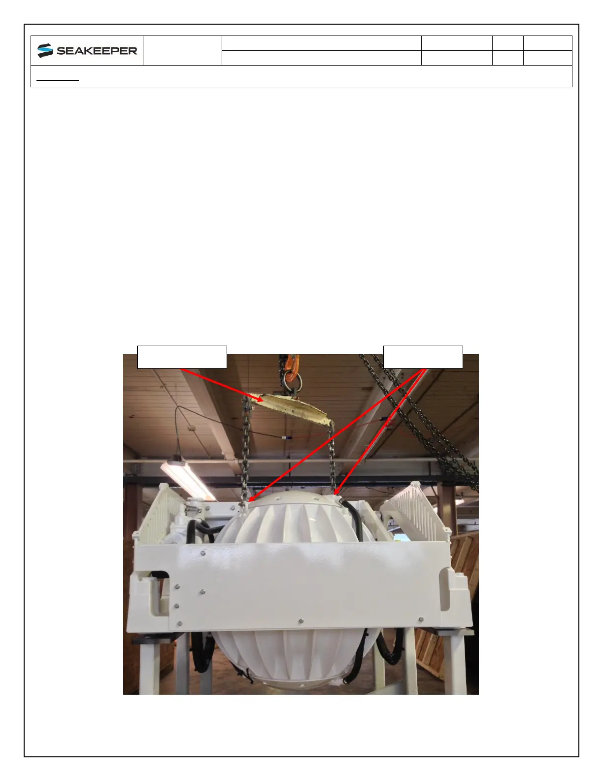 3) Attach spreader bar (Seakeeper P/N 11015) to the two lifting eyes located on the top of